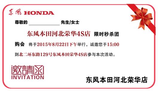 东风本田河北荣华4S店将于8月22日下午14:30——17:30举办一场盛大的“限时秒杀团购会”,限时3小时,其目的是感恩回馈广大顾客,这个周末,来点实在的!绝对是最优惠的“冰点价” 价格。小伙伴吗,你们准备好了吗? 限时团购会, “惊喜”连环送: 金牌首礼:东风本田汽车秒杀钜惠礼 金牌一重礼:准时进店签到有喜,即送精美礼品一份; 金牌二重礼:现场订车即送行车记录仪 ; 金牌三重礼:现场订车即可参与抽奖,100%中奖; 8月22日,仅限3小时,限时超低价,超出您的想象!活动当天现车抢售,部分车型即买即提!更多惊喜优惠等着您!看车、试驾、订车、置换均送大礼,还有机会获得东风本田荣华店总经理特批特价车呢!超值特惠价,数量有限,售完即止!更多活动详情欢迎致电:0311-86836658。 另东风本田荣华店将开展续保团购活动,商业险最低4.5折、赠送保养(二选一),另有多重惊喜礼品,活动仅限8月22日-23日,咨询热线:0311-86831320. 疯狂3小时,仅亏3小时,史无前例的优惠价格,争分夺秒的震撼现场,厂家直接让利,价格低到没朋友! 东风本田荣华店诚邀您8月22日到店参与此次购车盛宴,您期待的价格,让我们来超越!买车不求人,机会靠自己! 亲,周未去哪儿啊?去东风本田荣华店超级团购会的现场啊!!! 东风本田荣华店!亏本赚人气,只为销量跑第一! 全国最低价,就在东风本田荣华店! 买东风本田汽车,选择东风本田荣华店,绝对是您最好最放心的选择! 公司名称:东风本田汽车荣华特约销售服务店(河北省首家东风本田专卖店) 公司地址:北二环与建华北大街交叉口西行600米路北 销售热线:0311-8683 6658 售后热线:0311-8683 8898 置换热线:18603266327 24小时救援:0311-8683 8898 续保热线:0311-8683 1320 |