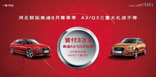 河北联拓奥迪夏末感恩回馈,特推出重礼8月尊享季。 即日起至8月31日,奥迪A3、Q3,重磅推出金融三重礼,首付3万3,奥迪A3、Q3开回家,满足客户轻松起驾,贷款零负担需求;8月29日,更大力度推出进店续保活动,超优活动价位加五重续保大礼,更有五单惊喜带给您。 即日起至8月31日,亲临河北联拓奥迪,即可尊享8月奥迪A3、Q3 三重大礼: 1重礼,到店购买奥迪A3 1.4T,专享3000元国家节能补贴,轻松驭见未来; 2重礼,到店购买奥迪A3,日供仅需69元; 3重礼,到店购买奥迪Q3,日供仅需89元。 更有零负担、零月供、零等待的无忧购车金融方案等你来享。 8月29日,河北联拓奥迪展厅,钜惠续保活动即将展开,活动当天进店续保的客户可享受当天活动价格,并参与活动当天抽奖。如果当天不能实现出单的或保期未到客户可以预交600元现金,待出单时可享受29号活动价。 续保活动当天,更惠享五重豪礼: 一重礼,活动期间续保除了享受保险公司正常7折后联拓再送40%维修费,现金优惠也能返到让你心跳; 二重礼,投保就有机会得2000元免费喷漆和汽车美容项目; 三重礼,活动期间进店续保即可获赠礼品,投保交强险也送。 四重礼,投保即可参与当天活动抽奖,中奖率100% ,行车记录仪、光波炉、0元续保; 五重礼,活动当天投保可赠送4S店双倍积分,积分兑换等你来享。 活动当天更是推出五单惊喜、活动当天0元续保多重好礼,商业险更是保费有多少,保养费用送多少 ! 敬请关注,天天送豪礼! 河北联拓奥迪微信公共账号 河北联拓奥迪特许经销商 地址:石家庄裕华路与东二环交叉口西南角 热销专线:0311—85031641 服务专线:0311—85081648 贷款热线:13932165284 租赁电话:18931186660 24小时救援电话:13930186965 |