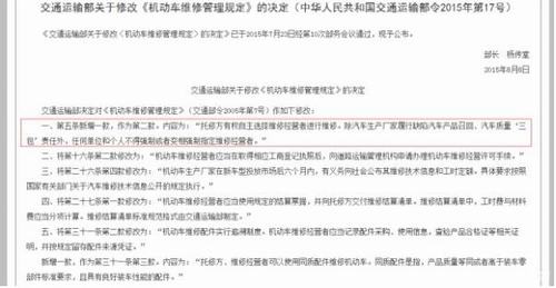 在车辆质保期间不去4S店质保算不算脱保一直是件聊不清楚的事儿,因为之前国家的相关法规和政策并没有特别明确的条款和规定。近日,国家交通运输部修改了《机动车维修管理规定》,其中明确规定了厂家和4S店不得以不在官方授权店保养为由拒绝给车辆质保,这无疑对广大车主来说是个极好的消息! ● 不去4S店≠脱保! 说到汽车保养,很多朋友都有过被4S店“坑”的经历。我们都知道,4S店保养虽然很省心,但高昂的价格、频繁的周期、过多的“清洗绑架”和推销都让车主朋友们头疼不已。但很多朋友明明清楚4S店的惯用伎俩但仍然去4S店保养的原因是什么?很明显,为了怕4S店不给质保。 这次交通部修改了《机动车维修管理规定》,原文是,“托修方有权自主选择维修经营者进行维修。除汽车生产厂家履行缺陷汽车召回、汽车质量三包责任外,任何单位和个人不得强制或者变相强制指定维修经营者”。 ● 编辑小结 管理规定一经发布,4S店售后顾问经常说的那句“你不来4S店保养,出了问题我们概不负责”成为了历史,从2015年8月26日,该项规定正式发文生效。可以确定的是,此项规定的修改会让汽车后市场的众多维修、保养企业获利,不过要想得到健康稳定的快速发展,非4S店的维修单位也应积极的做出改善方案,这样才能使中国的汽车后市场走向正轨。 |