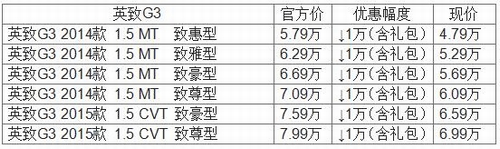 金色9月,潍柴英致 G3“钜惠风暴”,万元豪礼持续来袭。 2015年9月1日-9月30日期间,凡到潍柴英致汽车全国4S店购英致G3的客户即可享受万元钜惠,还有装潢和加油卡相送。英致G3作为一款好看、好稳、好省油的小型SUV,自上市以来越来越受到消费者青睐,并成为消费者购买小型SUV首选车型。 钜惠万元三重豪礼相送 5000元加装豪礼送不停。活动期间,购买英致 G3 所有客户可获赠价值5000元的购车7件套装饰,包括3D 脚垫、四季座椅套、3M 全车太阳膜、前后防撞杠、真皮方向盘套、迎宾踏板和车载香水等豪礼送不停。 您买车我加油 活动期间,购买英致G3的客户可获赠3000元油卡一张。按照英致G3百公里综合油耗6.6L和现在93#汽油不足6元每升来计算,3000元油卡可以让英致G3行驶近8千公里,作为常规家庭用车至少半年不用再花钱加油。 2000元置换补贴。活动期间,通过二手车置换购买英致G3的客户, 专享2000元置换补贴。 2000保养费用补贴。活动期间,非置换形式购买英致G3的客户可获得价值2000元的售后服务费用,按照每5000公里保养一次,每年大小保养各一次计算,大小保养仅需400元和200元左右,在三年之内还能享受免费保养。 英致G3好看好稳好省油成越野小钢炮首选 英致G3外观时尚,线条动感,多达9种车身颜色可选,硬朗锐利的个性化造型有着硬派越野范,配备的高亮度透镜组合大灯、LED日渐行车灯、铝合金行李架、镀铬装饰的雾灯、进气格栅、门把手等,不仅好看还有品质。英致G3内饰简约而不简单,车内大量采用仿皮纹缝线、仿碳纤维和镀铬装饰设计,让质感和触感兼具。 英致G3通过后备箱下沉和后排座椅后移等科学的车内空间布局,拥有同级小型SUV最宽大的车内驾乘舒适空间和车内多达20多处储物空间,特别是后排腿部空间尺寸高达916毫米。更重要的是,英致G3高达181毫米的底盘离地间隙造就了超越同级的高通过性。 英致G3搭载采用双顶置凸轮轴(DOHC)及三菱独有的连续可变气门正时技术(MIVEC)的全铝轻量化1.5L高性能发动机,输出功率达到83kw,扭矩达到141N.m,在同级同排量自然吸气发动机中动力属于高水平。传动方面,匹配德国格特拉克5速变速器和比利时邦奇CVT无级变速器,百公里实测综合路况和郊区道路油耗分别为6.67L和5.77L,其油耗堪比经济型轿车还低。此外,英致G3保养还超级便宜,每5000公里保养一次,小保养和大保养分别只需200元和400元左右。 英致G3的超强品质、超大空间、超高配置、超稳底盘等优势,加上现在购车即可享受1万元钜惠,可谓是千载难逢的入手机会,赶紧到潍柴英致汽车全国4S店参与英致G3试驾购车享受三重豪礼吧! 此外,英致汽车近日成功上市售价为5.68-9.98万元的首款七座高端全能家用车英致737,并推出了“幸福购车计划”,总计价值3000元的五重购车礼等着您,前2000名购买英致737舒适版用户还能免费升级铝合金轮毂。 详情咨询,官方热线:400-6086-333,网址:www.weichaimotor.com |