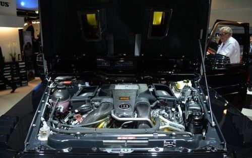2015法兰克福车展的巴博斯展台可谓众星云集,眼前这辆巴博斯G 63 AMG 850 6.0 Widestar就是其中最为重量级的车型之一。 我们先从最为疯狂的动力方面说起,原厂搭载双涡轮增压5.5升V8发动机几乎是被重新打造,不仅排量被扩至6.0升,还对内部进行了强化,使用了锻造活塞,精确平衡的曲轴和精磨的汽缸盖。 不仅如此,巴博斯还为这台发动机准备了尺寸更大的涡轮增压器,以及新的进气系统和全段排气系统。好了,现在数据来了,这台“全新的”发动机最大功率838没来,峰值扭矩1450牛·米。0-96km/h加速时间仅为4秒,最高时速被电子限制在260km/h。 巴博斯G 63 AMG 850 6.0 Widestar的另一个亮点就是它使用了一套尺寸达到23寸的锻造轮圈,匹配的轮胎尺寸为305/35 R23。再匹配巴博斯的动态行驶控制悬架控制系统,相信它的行驶质感一定不俗。 经过风动实验的空气动力学套件,当然也会作为这辆车的“标配”。全新的碳纤维发动机舱盖带有硕大的进气口和通风口,可为发动机提供足够的进气量和散热效率。 |