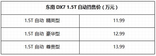 国务院一则“购置税减半”的优惠政策出台,让整个10月车市变得火热,尤其是SUV细分市场。而东南DX7更迎来“双喜临门”——自动挡车型正式到店上市、1.5T全系均符合“条件”,购置税减半最高可省6000元。两则利好消息一出,让这款原来就实力不俗的SUV再次备受热捧,订单火爆。 据了解,东南DX7 1.5T自动挡共推三款车型,分别是自动精英型、自动豪华型、自动尊贵型,售价区间为11.99-13.99万元。哪款性价比更高?哪款更符合你的用车需求?现在就为大家详细介绍一下东南DX7这三款自动挡车型,看看哪款更适合你。 延续产品优势 东南DX7自动挡内外兼备 东南DX7 1.5T自动挡车型保留了手动挡的产品优势——颜值高、内饰精致豪华、空间宽敞实用、配置丰富,更重要的是,3款自动挡车型的性价比也相当不错。 外观造型:东南DX7由世界三大汽车设计公司之一意大利宾尼法利纳操刀整车内外装设计,原创性极高。秉承宾法“流动的力量”的设计理念,符合时下消费者的审美需求,即年轻、时尚以及动感,被宾法CEO称为“SUV世界新标杆”。 内饰做工:东南DX7的内饰采用软性材质包裹、双线缝合的设计,尽显品位格调;采用的棕、黑颜色搭配,让东南DX7既显年轻又不失高档质感。座椅良好的支撑性和包裹性减少因座椅问题带来的劳累感,提供更为舒适的乘驾体验。 乘载空间:东南DX7的长宽高分别为4530×1900×1700(mm),轴距达到2700mm。无论是轴距还是车宽,与同级竞品相比都处于较高水平。 储物空间方面,东南DX7很好地考虑到了消费者的需求,设置了多处人性化的储物格,后备厢也比较规整,标准容积为456L,将后排座椅放倒后可扩充至1180L,此时其储物的最大纵深可达1700mm,满足了多种载人载物需求。 动力操控:东南DX7自动挡均搭载了三菱全铝4A91T的1.5T涡轮增压发动机,最大扭矩达215N·M,最大功率115kW,达到国际先进水平;匹配韩国现代原装进口5速手自一体变速器,换挡平顺,节油性出色。这套动力总成的稳定性和可靠性得到行业内一致认可。 底盘方面,东南DX7装配了麦弗逊式独立前悬架和多连杆式独立后悬架。而200mm的离地间隙,保证了DX7具备较高的通过性。 |