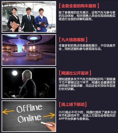你见过资深汽车编辑现场带咱买车的吗?你见过几大车企联合打折促销的吗?你见过买车还送电视机的吗?你见过买车当场就发现金的吗?没见过的话你还在等什么!2015年10月31日至11月1日,辛集新皮革城东二门共享空间,网通社公开课——汽车科技千县巡展来了! 在这里有专业资深汽车主编带你会选车、会买车、会用车!在这里六大品牌联合促销逆天优惠任你享!在这里买车还能抽彩电开心回家看春晚!在这里你敢下单我敢补,千元现金任你抢!身处购车困扰中的同胞们,你们到底还在犹豫什么?我们在辛集期待你的到来! 网通社公开课•汽车科技千县巡展携手河北报业集团河北新闻网强势登陆,在为期2个月的时间里,将在辛集、石家庄、唐山、沧州、衡水全面开讲,一场场惊心动魄的促销盛筵,一节节细致贴切的科技讲堂,相信将会为你带来全方位的恋车感受。 网通社公开课,旨在地方城市普及汽车科技知识,帮助消费者塑造成熟、专业的的汽车认知。各大厂商在活动现场也有售卖展台,更为消费者提供了一站式的懂车、选车、购车全套服务。 在综合展示区里设有九大版块的有信息展板、现场参与互动和销售人员的现场导购,同时还有深度信息的线上导流。 公开宣讲是老百姓们最喜欢听的环节之一,网通社会邀请众多资深讲师亲临讲解,同时还会在选车、购车、用车等问题上做切身的课题讲座和目标车型针对引导。 不仅如此,网通社还准备了线上线下联动,关注车王微信公众号获取更多精彩内容,互动提问环节也会为您提供前所未有的体验。 除了汽车方面的资讯,网通社还特意准备了结合时尚、艺术和运动的潮流节目,而视频等展示内容也可以让参与者迅速了解活动内容与流程,网通社大讲堂会围绕当地受众和最感兴趣的车型进行演讲,诸多的现场互动和细致入微的人流引导将以软性的方式传达给参与者。 除此之外网通社还特意准备了汽车科技展示区,会在现场通过区域背板展示不同分类的汽车科技内容,而内容展示则会涉及到动力、油耗、安全、操控、互联网汽车、新能源汽车、未来科技等9个方面。 更值得一提的是,网通社还特意准备了红包补助,每日下单购车的前10名会得到千元红包的丰厚奖励。 除此之外,网通社还联合了东风标致、天津一汽和东风雪铁龙一同参加这次活动,而这次活动的福利和优惠也是数不胜数。 东风标致的301、308、2008和408将参与其中,在优惠方面会有液晶电视,而且现场均是低价销售,另外还赠500元汽车养护劵。 天津一汽会有3辆车型进入展会,分别是夏利和2辆骏派。而东风雪铁龙则会有新爱丽舍、新世嘉和C4L与大家见面,东风雪铁龙会有现场2-3万的优惠,而且还会赠送车贴膜、座套、大包围脚垫等各种福利。 说到最后还是那句话,面对如此丰厚的福利和面面俱到的活动,你到底还在犹豫什么?网通社公开课•汽车科技千县巡展定能勾起你的购车欲望,而且还能满足你对汽车所有的疑问和困惑,如果你想成为伯乐就不要再纠结了,赶快加入网通社的活动,千里马就在这里等着你! |