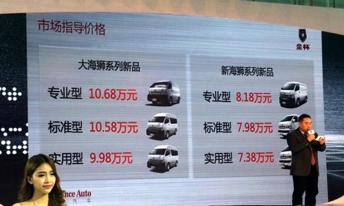 在2015广州车展上,华晨金杯正式发布了新海狮和大海狮系列新车型的售价,新海狮为7.38-8.18万元;大海狮为9.98万-10.68万元。 新海狮外观上配备了磨砂黑前后保险杠、外后视镜、门把手以及轻量化设计的铝合金盲窗。车身侧面平整,适合粘贴车体广告。新海狮标准型产品的车厢内配备地胶地面,实用耐磨。多功能座椅可折叠前翻,而货舱容积达到6600L。优化后的底盘最大承载力达到1100KG, 较传统轻客提高20%。动力方面,整车搭载2.0升发动机,同时还配备了ABS+EBD系统。 大海狮新品其容积达到8400L,空间利用率达到40%,动力方面,搭载引用丰田技术的2.4升汽油发动机和2.5升高压共轨柴油涡轮增压发动机。目前有关两款车的更多信息我们还不清楚,更多消息,我们将继续关注。 |