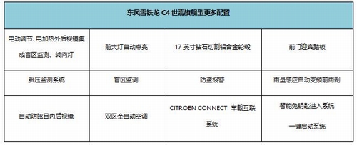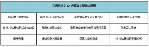 11月18号晚,东风雪铁龙新一代高效能中级车C4世嘉在深圳撼世登场。售价10.78-16.48万的C4世嘉,共推出了舒适型、豪华型及旗舰型三款不同级别累计八款车型。进一步细分了中级车市场的产品布局,同时也与全新爱丽舍、新世嘉以及C4L构建了东风雪铁龙中级车市场的明星阵营。今天,我们就来为C4世嘉做个X光全透视,看看它各级别车型之间有哪些同与不同。 初步体检:新的设计 新的潮流 采用欧式新平衡主义设计理念,C4世嘉前脸简洁时尚,配合双人字logo,彰显着雪铁龙家族的高辨识度;整体车身的设计上,各处均使用了简洁的线条勾勒,车身整体干净而干练;侧身腰线一段式贯穿,相比改装车型二段式的分割腰线,设计更具整体性。 灯组是C4世嘉外观设计的又一看点。前大灯一字上扬,配合低压的前脸,凸显运动感;灯组内部熏黑,在动感之中提升了整车的深邃沉稳的气势。尾灯继承了概念车Technospace的造型元素,回旋式的尾灯凸显科技感。钻石切割立体运动轮毂通过强烈的双色对比,营造出醒目的动感。搭配钻石切割立体运动轮毂通过强烈的双色对比,营造出醒目的动感。 在内饰的设计中,C4世嘉同样实现了功能性与审美价值的平衡。简洁的设计使车厢整体布局更加明快。方向盘采用D型设计,增加了手感上的舒适,同时也显得更加的运动。双炮筒式的仪表盘,犹如宇航镜一般,释放着C4世嘉内饰设计的未来感。此外,在内饰的用料上面,C4世嘉多处哑光镀铬的饰件,在细节中流露出整车的品质感。在座舱舒适度的营造上,C4世嘉的座椅采用独特型面分割设计,厚实而稳固,让驾乘也更加的舒适。 舒适型体检:配置厚道 价格人性 C4世嘉舒适版车型提供两款动力总成,三款车型,分别是1.6L CVVT手动舒适型、1.6L CVVT?自动舒适型以及1.2THP?手动舒适型,价格分别为10.78万元、11.98万元以及11.88万元。除了家族式的脸谱之外,我们来看看C4世嘉舒适版车型有哪些亮点。 舒适型属于入门级车型,不过在配置上已经十分全面。在外部配置上拥有前后雾灯、电动调节外后视镜、伴我回家大灯、包裹性十足的座椅,都是比较实用的配置。前排正面双安全气囊、驾驶座安全带未系指示及报警、后排ISOFIX儿童安全座椅固定装置、以及集8项主动安全装备于一身的博世第九代ESP电子稳定系统等,全面保护驾乘者安全用车。7英寸彩色多媒体智能触屏系统,蓝牙手机系统等提升了整车的科技感。其中1.2THP手动舒适版车型,还拥有STT智能启停系统,以成熟的微混技术实现更优的燃油经济性。 豪华型体检:装备丰富 实力突出 豪华型同样集成两款动力总成,分别是1.6L CVVT手动豪华型、1.6L CVVT自动豪华型,以及1.2THP自动豪华型;价格分别是11.68万元、12.88万元以及13.98万元。相比舒适版价格多了1万元多,但配置不止多了一点点。 豪华型在外部配置上增添了LED日行灯,采用了16英寸钻石切割多幅轮毂,并且在侧窗下沿加入了镀铬条装饰,车身外门把手也增加了镀铬装饰,提升了整车的品质感。内部配置上,增加了更多的实用及安全配置,诸如安全气帘、倒车雷达系统、倒车影像、真皮多功能方向盘、定速巡航、限速器、双区空调等,让驾乘更显愉悦。 旗舰型体检:舒适时尚 科技感十足 旗舰型是C4世嘉的顶配车型,1.2THP自动旗舰、1.6THP自动旗舰,分别售价15.38万元以及16.48万元。旗舰型在外观、内饰方面,与舒适型、豪华型基本没有什么差异,在配置上则采用了更多的舒适、安全及科技配置。 比如舒适配置方面,电动调节、加热外后视镜集成转向灯,前门迎宾踏板等让用车生活更显精致;安全配置方面,safeye盲区监测这种只出现在高端车型中的装备,也在C4世嘉的上有所装载,外加雨量感应自动变频前雨刮,自动防炫目内后视镜等让用车更加无忧;无钥匙进入、一键启停、电动天窗、座椅电动调节、花粉过滤等等,进一步提升了C4世嘉的舒适驾乘感受。 看完了C4世嘉的全系体检,相信大家基本也都心里有谱。除此之外,C4世嘉全系均享受国家购置税减半政策,同时为了更好地感恩消费者,现在购买C4世嘉还可尊享最高达4000元金融购车优惠。 |