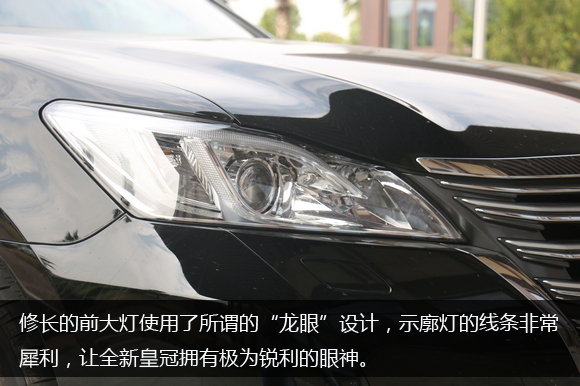车头中央部分采用水晶质感网状格栅与全新皇冠车标的组合,让其拥有了不错的立体感和时尚感,年轻化的风格明显。 狭长的前大灯使用了所谓的“龙眼”设计,示廓灯的线条非常犀利,让全新皇冠拥有极为锐利的眼神。灯源方面,采用远近光一体化的LED大灯,并带有透镜设计。 车身侧面借助俯冲式腰线着重展现“水平跃动感”,让车身整体给人以蓄势待发,并随时将跃动而出的感觉,展现了其特有的动感与力量,视觉效果非常有冲击力。车身尺寸上与2.5L车型一致,长宽高分别为为502018051480mm,轴距为2925mm。 |