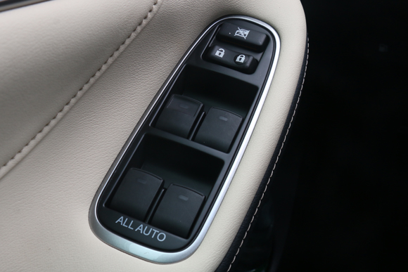 方向盘左侧的按键是全景可视监控系统开启开关和外后视镜电动操作区,车辆前后左右均有摄像头,可提供360度全景动态视野。 仪表盘方面,全新皇冠从老款车型的三表盘更换为双炮筒设计,显然也是针对新车型年轻化方向的统一调整。中间彩色的行车电脑液晶屏可以显示的内容极为丰富,显示效果也足够细腻。 四门玻璃可实现一键升/降,磨砂的按键手感不错。 |