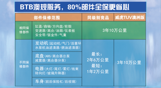 近年来,随着国内皮卡市场日趋成熟,消费者购车也更加理性,不仅看重产品品质,对售后服务同样倍加关注.据悉,中兴威虎TUV澳洲版将于12月份上市,所谓澳洲版,即中兴汽车目前供应澳大利亚高端市场的出口版车型,其产品的动力性能、操控性能、通过性能,安全标准以及服务标准都极具竞争优势. 尤其值得一提的是,在售后服务方面,中兴威虎TUV澳洲版,独家推出了BTB保修政策、VIP专属服务等特色服务,不仅让消费者不出国门便能开上出口车,享受国际高品质的售后服务,更树立了皮卡行业售后服务的新标杆. 纯正澳洲血统 BTB保修政策更全面 作为国内威虎皮卡家族的新成员,中兴威虎TUV澳洲版拥有纯正的澳洲血统,产品通过了严苛的澳大利亚ADR法规、新西兰2693:2007AS/NZS 标准、ECE欧规标准,并且获得了RDW荷兰交通部颁发的欧规证书以及零部件单品欧规证书等,国际范儿十足.而且,中兴威虎TUV澳洲版在国内独家推出了BTB保修服务政策,为整车提供从前保险杠到后保险杠的全面保修服务,可谓细致入微,面面俱到. 中兴威虎TUV澳洲版全车保修3年10万公里,全车零部件质保覆盖率高达80%,是国内皮卡市场中保修里程最长、保修项目最多的车型,遥遥领先于同级别竞品2年5万公里的保修里程以及34%的质保覆盖率,这些服务标准都将让用户得到最大的实惠,让车主放心开车,尽情享受国际化的售后服务. 升级服务体验 VIP专属服务更安心 VIP服务向来是豪华乘用车品牌为车主提供的专属福利,以期为车主带来尊贵、舒适、愉悦的用车体验,但在皮卡市场则极为少见.为给国内消费者提供更为国际化、人性化的服务体验,中兴威虎TUV澳洲版突破传统的服务模式,在国内皮卡市场率先推出了量身定制式的VIP专属服务,为车主提供更快捷、更高效、更高端的售后服务. 据悉,中兴汽车为此专门组建了一支VIP服务团队,成员包括VIP服务专员和VIP专修组人员,主要负责为中兴威虎TUV澳洲版车主提供一对一专人接待、VIP专修工位等专属服务,让车主尽享比肩豪华乘用车品牌的高品质服务以及便利、贴心的用车体验. 首家超长质保 用户购车更省心 在保修政策关键部件对标中,威虎TUV澳洲版全车80%的主要零部件都实现了36个月的超长质保期,比同级别产品高出45%;在发动机方面,超过69%的零部件拥有36个月的质保期,而同级别产品的比例仅为0.03%,尤其发电机、起动机、电热塞、活塞环、水泵、EDU等15类关键部件优势明显;在损耗更大底盘系统中,59类关键部件中有51项保修达到36个月,比例占86%以上,同样远超同级竞品车辆;在车身方面,威虎TUV澳洲版37个零部件更是实现了100%全面质保,且超过84%的零部件拥有36个月的超长质保期,比同级别产品高出52%;在电气部分也同样在保修数量和保修比例远远超过同级竞品. 业内人士认为,中兴威虎TUV澳洲版推出的国内首家3年10万零部件80%保修标准,相比国内同级别竞品34%保修部件大多为"铁疙瘩"的政策,优势明显,彻底免除了用户的后顾之忧,为用户省钱,实实在在看得见. 作为中国皮卡的开创者,中兴汽车66年来始终坚持自主研发,掌握皮卡核心造车技术.自主高端皮卡中兴威虎TUV澳洲版12月份将在国内上市,不仅将为国内皮卡市场注入新活力,让用户开上地地道道的出口车,而且其精心推出的BTB保修政策、VIP专属服务等特色服务政策,将彻底打破行业传统服务水准,树立皮卡服务新标杆! |