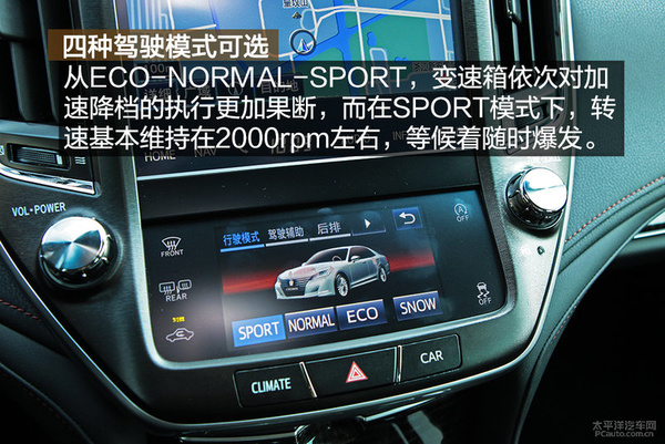 当你大脚油门时,发动机也能榨取足够的动力给你提供加速度,整个过程并突兀暴力,但速度已经悄然上升.或许榨取一词并不准确,因为这台2.0T发动机给我留下最深刻的影响是,当转速进入了3000rpm-5000rpm的巅峰状态时,车内的人依旧能谈笑风生,但并不感到发动机嘶吼或者声嘶力竭,它的表现依旧从容淡定. 或许有人还会担心,后段的爆发不足,但从实际的感受来看,即便在100km/h再加速,它依旧能有非常不错的输出.试驾的过程中,有封闭赛道的试驾环节,在大直道上120km/h巡航,此时再半油门,发动机依旧像不费吹灰之力使车辆加速. 假如轻油门加速,每挡之间的转速落差仅为200-300rpm左右,8前进挡也让巡航时有更低的转速,在80km/h时的发动机转速不到1500rpm,而120km/h巡航时的转速约2000rpm左右.其实在雷克萨斯NX和汉兰达上的2.0T所匹配的6AT自动变速箱的表现得很完美了,我也曾想过有皇冠上的2.0T使用8AT是不是一个多余的举动,不过单单从它的表现来看,虽然这一举动对于驾乘感受来说并没有明显的提升作用,但绝对不是鸡肋,因为这台8AT的表现也同样出色,更何况8AT比6AT听上去就会让您的心里阴影面积大幅度减少了. 可以吹毛求疵的是,有时候需要加速或者超车时,只要油门稍大这套变速箱便执行降挡,虽然这种设定更容易获得动力,但即便变速箱动作再轻柔,但每次的换挡都是对舒适性产生损失,这或许是小排量增压发动机和多挡位数的变速箱所带来的负面影响吧. 2.0T的车型上同样提供了ECO、NORMAL、SPORT、SNOW四种驾驶模式选项,在SPORT模式下,转速基本维持在2000rpm左右,等候着随时爆发;而NORMAL模式下,变速箱无论升降挡都表现十分积极.从ECO-NORMAL-SPORT,变速箱依次对加速降档的执行更加果断,不过总体的反应要比宝马2.0T上搭载ZF的8AT要稍慢,不过对于舒适偏向的皇冠完全可以接受,毕竟提供的运动模式就足以满足绝大多数人的需要. 在底盘方面已经不需要赞美之词去吹捧,虽然延续前双叉臂后多连杆的悬挂形式,不过还是不要对其运动性抱有太多期望,舒适性依旧是这个级别车型的标杆,在提供极为出色的滤震效果的同时,底盘对于突如其来的冲击以及快速通过下伏路时都能稳稳地控制车身的姿态. 在我的印象里,丰田是个喜欢用"脸盘"当方向盘的厂商,不少车型的方向盘尺寸都偏大,这一代的皇冠也同样稍微偏大,不过考虑到它的定位,这种做法还是能够理解.方向盘的转向轻盈,隔绝了绝大多数的路面信息,延续了轻松舒适,不打扰到乘客和驾驶员的一贯调教. |
