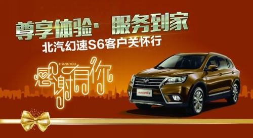 虽然冬季气温越来越冷,但关爱能为您添一份暖意.2015年12月18日-2016年5月30日,北汽幻速将在全国范围内举行尊享体验·服务到家--北汽幻速S6客户关怀行活动.从这个寒冷的冬日开始,用心呵护您的座驾,将贴心的服务送到您家. 为了感谢广大车主对北汽幻速S6的选择与信赖,让大家能够感受到高品质全能SUV所带来的全新生活体验.北汽幻速特别为2016年4月30日之前购买北汽幻速S6的车主朋友们准备了五重关怀礼,并将在提车后上门拜访,把尊贵服务体验100%直送到每一位车主家中. 第一重关怀:活动期间,北汽幻速将派专业人员上门为广大北汽幻速S6车主提供多达16项的免费车辆健康检查,包含冷却、制动、空调、底盘、电器五大系统等核心部件,并免费添加油液,为您的爱车保驾护航. 第二重关怀:北汽幻速将针对北汽幻速S6车主做一个全面、详细的用车感受调查,用心倾听您的意见与建议,以保证您能够随时享受到最优质的服务. 第三重关怀:活动期间,北汽幻速售后的专业人员将上门为您介绍车辆维护及使用常识,并为您确认最佳首保时间. 第四重关怀:受到拜访的北汽幻速车主可获得由北汽幻速厂家所提供的北汽幻速S6宣传资料1份,更能享受专属定制的"老带新"购车优惠政策. 第五重关怀:活动期间,为感谢S6车主对北汽幻速的信赖,上门拜访人员将向每位车主递交北汽幻速总经理亲笔感谢信,同时将获得由北汽幻速所提供的北汽幻速关爱礼品一份. 北汽幻速将2015年定为"服务年",一直以来也秉承"专业、快捷"的服务理念,致力于为用户带来高品质好车的同时,也期望也让用户获得更省心、更放心、更安心的售后服务体验.本次活动,正是为了回馈广大车主对北汽幻速产品和品牌的信赖与厚爱而送上一次充满诚意的关怀活动. 尊享体验·服务到家--北汽幻速S6客户关怀行活动,用专业、真诚与关爱为您带来一个安享无忧的暖冬,让您的爱车在辞旧迎新之时得到加倍养护.欲知更多详情请关注北汽幻速官方微信(微信号:beiqihuansu),或致电当地北汽幻速特约经销商. |
