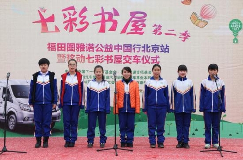 当车门打开后,蒲公英中学的学生们发出了一阵惊叹与喝彩,这是他们亲眼看到一辆汽车以一座书屋的方式来到他们中间的场景.12月27日,"七彩书屋"第二季福田图雅诺公益中国行活动来到北京蒲公英中学,福田轻型商用车为蒲公英中学的学生们送去1000册爱心图书,同时为他们捐建的爱心七彩书屋正式揭牌.值得一提的是,由福田图雅诺改装成的移动七彩书屋正式亮相,并交付给中国下一代教育基金会使用,这也标志着继七彩书屋活动后福田图雅诺移动七彩书屋正式起航.未来,这"座"移动书屋将在基金会工作人员的带领下,为国内贫困山区的学生们送去图书和知识. 大爱凝注 温暖寒冬 北京蒲公英中学是一所专门为打工子弟开办的公益学校.活动当天正赶上北京下雪,站在简陋的教室里让来到这里的公益人士都瑟瑟发抖,很难想像这是一所位于北京五环内的学校. 中国下一代教育基金会理事长王萍表示,相比起一些西部山区的贫困学校,蒲公英中学的条件已经算很不错了.而这些学校也需要社会更多的关注,为此我们基金会成立了爱心速递专项基金,虽然我们力量有限,无法马上改善他们的物质生活条件,但是希望通过对他们精神生活的关注,为他们送去书籍和知识,帮助他们自信、健康的成长.也感谢福田汽车能与我们一起合作发起"七彩书屋"活动推动此项目. 对于教室的简陋和寒冷,这里的学生们基本上都并不在意,他们看到我们的到来显得非常开心.特别是看到了七彩书屋--他们自己新的图书馆的落成更加兴奋,并写下感激的明信片. "每次看到学生们看到七彩书屋兴奋的表情,也坚定了福田汽车把这个项目继续办下去的决心."福田汽车集团党委副书记赵景光书记表示,七彩书屋活动的初衷就是希望为贫困学校的孩子送去书籍与知识.这个活动从2014年4月启动,去年完成了第一季活动,一年内福田汽车先后在北京、深圳、昆明等11个区域学校完成书籍捐赠,并在云南、四川等地建立了17所七彩书屋.作为上一季的延续,福田汽车与中国下一代教育基金会一起,已在福州、深圳、长春、包头、成都、西藏等城市开展了多场七彩书屋捐赠活动. 而作为受捐一方的代表,蒲公英中学校长郑洪从教育的角度肯定了七彩书屋的意义,她表示,作为一所打工子弟学校,我们社会责任是两个层次,一个是给孩子机会,一个是给孩子优质教育.育人我们认为是给本来毫无希望的孩子播撒希望的种子,构建他们人生的意义,还要培养他们幸福的品格.这种育人和幸福品格的获得,一方面需要我们教师的引导,另一方面就是需要他们自己读更多的书籍来开拓自己的视野.我们学校每年办学经费有限,所以福田汽车七彩书屋的建立能在很大程度上帮我们实现这个目的.我们相信孩子们是国家的栋梁,不是社会的包袱.我也希望有更多的人来看望孩子、了解孩子、支持孩子们! 为了让这里的学生们体会知识的乐趣,除了建立七彩书屋外,通过资源协调,福田汽车还将中国汉字听写大会全国海选赛带到了蒲公英中学,七年级二班的贾慧慧同学成为蒲公英中学最终胜出者.她有些腼腆的告诉记者,自己的胜出真的很幸运,真的很感谢学校给与自己参加这个全国比赛的机会.这也是自己很喜欢蒲公英中学的原因,虽然这里的条件比不上隔壁的公立学校,但是来到这里的同学都是和自己一样从五湖四海随父母来北京生活,在蒲公英中学可以获得更多与外界沟通的机会,甚至出国见世面的机会.特别是很多爱心人士都在关注我们,除了可以快快乐乐的读书,还可以享受丰富多彩的课余生活。 "移动"公益 爱心续航 七彩书屋活动让福田汽车感受了贫困学校学生对知识的渴望,为了能给更多的学校送去图书,福田轻型商用车今年特地改装了一辆福田图雅诺作为移动七彩书屋.现场,福田汽车将改装后的图雅诺汽车钥匙交给中国下一代教育基金会,移动七彩书屋之行正式起航.福田图雅诺"移动七彩书屋"将前往山东、江苏、浙江等多个省份的12所贫困学校,继续为学生们送去图书并建立七彩书屋,七彩书屋已由星星之火渐成燎原之势. 据福田轻型商用车介绍,为圆满完成本次移动七彩书屋之行,福田轻型商用车特地选择图雅诺作为改装车型,该车拥有纯正德系血统,是国内首款经过德国TUV莱茵认证的商务大VAN.整车由德国斯图加特研发中心研发设计,在安全、技术、服务等领域也均达到德国考核标准,该车经过从零部件质量到制造过程质量等重重关卡全方位检验,保证了车辆的安全性与舒适性.此外,图雅诺配备了康明斯动力系统,整车集时尚外观、精工品质和卓越性能为一体,全面满足用户多重需求.正因为其过硬品质,在纪念中国人民抗日战争暨世界反法西斯战争胜利70周年阅兵式期间,福田图雅诺负责各国政府最高级别代表及负责人的全程出行,成为举世瞩目的元首国宾车. 当现场的学生们看到由此车改装的书屋后,非常兴奋并纷纷上车观看,并询问这车的特点和未来用途.工作人员介绍说,这个改装书屋,将以移动方式前往国内其他贫困学校为那里的学生送去知识与书籍.不仅如此,未来3年,福田轻型商用车将持续投入资金用于"七彩书屋"公益项目,发动社会大众和全国范围内100多家经销商参与,3年将捐赠图书约10万余册,在全国范围内进行爱心捐赠. 对此,中国下一代教育基金会爱心速递专项基金秘书长可勒表示,在我国边远地区还有众多的贫困儿童,