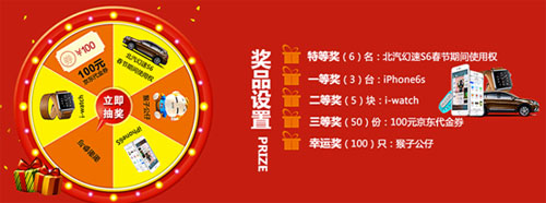 眼看春节假期越来越近,回家的日子就在眼前,12306验证码游戏你通关了吗,回家的火车票搞定了吗?说实话,在春运的节骨眼儿上,怎么赶路都很"憋屈",不如抽辆免费的高品质全能SUV--北汽幻速S6,回家的路说走就走。即日起至2月29日,北汽幻速启动"世界再大,也要回家"春节回馈大行动,6辆北汽幻速S6免费开回家,还有iPhone6s、iWatch等新春好礼等你来抽! 世界再大,北汽幻速S6带你回家 虽说这也算是难得的"天上掉馅饼",但想要开着拥有"高颜值"、"高内涵"、"高性能"、"高安全"的北汽幻速S6回家,找对方法很重要。 首先,一定要关注北汽幻速官网、官方微信与微博上同时推出的#世界再大,也要回家#专题活动,并在1月24日之前注册信息、参与抽奖(千万记住动作要快,姿势要帅),最终将产生6名幸运儿赢取北汽幻速S6春节期间免费使用权,凭自己的好运气免去春运的烦恼,开开心心回家享受幸福团圆。除此之外,北汽幻速还将邀请这6位抽中"回家特权"的幸运儿跟大家分享回家旅途中的故事和驾车感受,感兴趣的朋友一定不能错过! 猴年大吉,十万回家礼包送给你 一年一度的新春佳节,肯定"独乐乐不如众乐乐"。没抢到好车开回家,中点其他的"年货"也是极好的! 北汽幻速#世界再大,也要回家#活动期间,除了特等奖(6台北汽幻速S6的春节期间使用权),北汽幻速还将为大家送出花式"猴年回家礼包", iPhone 6S 、iWatch、百元京东代金券与猴子公仔,样样合你心意。 #世界再大,也要回家#花式回家礼包,等你来拿! 经历了一年的忙碌与奋斗,终于盼来了春节与家人的短暂团聚,在回家这件大事儿上,的确值得犒赏自己一下!赶快扫描下方二维码,关注北汽幻速#世界再大,也要回家#专题活动页面,北汽幻速送车又送礼,陪你过个开心团圆年! 扫描二维码,了解更多活动详情 |