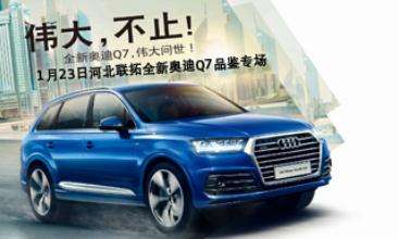 【全新奥迪Q7 伟大,不止!】 1月23日,伟大时刻,邀您诚邀共鉴! 详询:0311-85031641 地址:裕华路东二环西南角 伟大,是艰险中的无畏,是挑战后的成功; 不止,是逆境中的决心,是努力中的信念. 伟大,从不是一个终点,而是一种坚持. 不止,从不是一个口号,而是不懈前行. 只有不停止脚步,才是真正的伟大. 【超级机动】 四轮转向 第七代quattro全时四驱 【超级续航】 减重300Kg 【超级智能】 虚拟驾驶舱 Audi?connect互联科技 All?in?touch超大触控板 【超级舒适】 3D声学B&O音响系统 独立后排娱乐系统 【订车砸金蛋】 活动当天订车客户还可参与砸金蛋活动,让您砸出好运砸出大礼! 【签到领窗花】 喜气洋洋过大年,活动当天签到即可领取精美窗花一份. 【精美冷餐】 河北联拓奥迪更为客户提供精美冷餐,让您在这寒冷的冬日感受到家的温馨. 【猴年"尊融"金融购车计划 】 提前享受奥迪,提前尽享尊贵.让你从容实现你的人生目标. 方案1: 尊融易贷购车方案 贷款首付20%起,12期0利息,长期低利息. 方案2:尊融即享购车方案 信用卡分期,首付20%起,12期0利息,长期低利息. "尊融礼遇" (一季度限时方案) 首付30%-60%,尾款30%,3年期低利率 . 新推出3年期年还产品,首付20%起 平时尽享低月供,每年一次集中还款,还款方式更灵活. 河北联拓奥迪特许经销商 地址:石家庄裕华东路166号 热销专线:0311-85031641 服务专线:0311-85081648 贷款热线:13932165284 租赁电话:18931186660 |