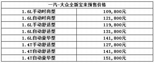l2月22日,一汽-大众全新宝来启动预售,预售价格区间为10.98-15.18万元,现全面接受预定; l凭借全面升级优化的整车性能、内外兼修的品质实力,全新宝来定将再次树立新一代德系高品质A级家轿典范. 2月22日,值此猴年元宵佳节之际,一汽-大众重磅新车全新宝来全面启动预售,为全国消费者献上一份新春大礼.据悉,新车目前已到达一汽-大众全国各经销商网点,预售价格区间为10.98-15.18万元.全新宝来集时尚进取造型、愉悦驾驶乐趣、宽适驾乘感受、全面五星安全于一身,将成为真正满足当下中国年轻家庭现实需求的新一代A级家轿典范,必将再掀新一轮销售热潮. 一汽-大众全新宝来全系8款车型,预售价格如下: 开局之车 全新宝来再树高品质家轿典范 "全新宝来是今年我们第一款重磅新车,它肩负着引领2016年一汽-大众新产品的重任.由内到外全面升级的全新宝来,将成为同级车型的最新典范.全新宝来拥有凌越同级的制造标准和工艺品质,相信它会受到市场与消费者的认可,再创新的辉煌." 一汽-大众大众品牌相关负责人如是说. 卓尔不凡的进取造型,全新宝来吸睛无数 "跟原来的宝来相比,全新宝来堪称焕然一新,它拥有全新的设计风格和语言,内饰很精致,空间宽敞,配置也很高,整个车的档次都在往上提."一位刚刚试驾过全新宝来的资深汽车媒体如此评价,"在10-15万元级别的车里,全新宝来的产品实力和工艺品质都非常突出,再加上宝来十几年来积累的品牌号召力,月销2万辆,甚至是3万辆都是没有问题的." 全面升级、全新换代的全新宝来,让一切变得更好 众所周知,A级车市场作为中国最大的汽车细分市场,聚集着各大车企近百款重磅车型,近年来的竞争更是呈现出白热化态势.而作为A级车市场叫好又叫座的经典车型,宝来一直在竞争最激烈的A级车市场稳居销量前列.15年来,凭借其前沿设计、超高品质、完美操控和越级配置,宝来赢得了超过175万车主的喜爱与信赖,在广大消费者心中树立起不可撼动的高品质家轿典范形象."宝来"二字也因此成为大众植根中国,并与万千个家庭共享生活喜悦的完美诠释. 内外兼修 5大优势全面满足家庭用车需求 全新宝来采用大众最新的设计语言,以强劲舒展的线条,勾勒出更立体优雅的整车造型,满足全家的审美需求.在内饰设计上,全新宝来大量采用堪比高级车的镀铬装饰,让整个内饰雅致且实用,带来领先同级的品质感. 全新宝来每个线条都流动着时尚、高档的质感 全新宝来精致、立体的内饰,恰到好处的彰显出车主的品味 全新宝来搭载了最新一代EA211系列发动机,提供1.6L和1.4TSI两种动力选择,并匹配5速手动、6速Tiptronic手自一体以及7速DSG双离合自动变速器.EA211 1.4TSI发动机+7速DSG双离合变速箱的升级版"黄金动力组合"动力更澎湃、更绿色环保.值得一提的是,全新宝来1.4TSI车型油耗仅为5.3L/百公里,再创同级新低,实现动力与节能的完美平衡. 升级版"TSI+DSG"随心随意、车随心动 针对消费者对宽敞空间的向往及满足全家出行的需求,全新宝来以更大、更便捷、更舒适的空间为家庭承载更多乐趣.其长宽高分别为4562/1793/1468mm,轴距2614mm,尺寸增加的同时空间显著提升,其前后腿部空间增加达20mm.490L超大行李箱空间,结合后排座椅4/6折叠,让乘坐及载物更加随心. 全新宝来以领先同级的安全配置为全家出行保驾护航,全系标配含ABS、EBD、MSR、ASR、EDS等功能的全新ESP电子稳定系统、HBA液压制动辅助功能、HHC坡路起步辅助功能、大众最新智能电子防盗系统、后倒车雷达等,多达29项主动安全装备和23项被动安全装备,为全车乘员带来360度的安全保障. 在科技方面,全新宝来同样实现了对于同级别车型的全面领先和超越.不仅拥有Keyless智能钥匙和发动机一键启动功能,更配备了定速巡航、智能化多功能行车电脑、感应式雨刷器、Clean Air PM 2.5空气滤芯、自动空调,以及多点触摸多信息娱乐系统等配置,充分考虑到当今消费者对智能科技设备的使用需求. 作为一汽-大众倾力打造的2016年"开局之车",全新宝来将以更靓设计、更强动力、更大空间、更高安全、更优配置,为那些在事业上积极进取、生活上追求品质的广大消费者,带来一款真正将进取造型与驾驶乐趣完美结合的德系高品质好车.我们有理由相信,全新宝来定将再次超越自我,引领中国高品质A级轿车再开新局. |