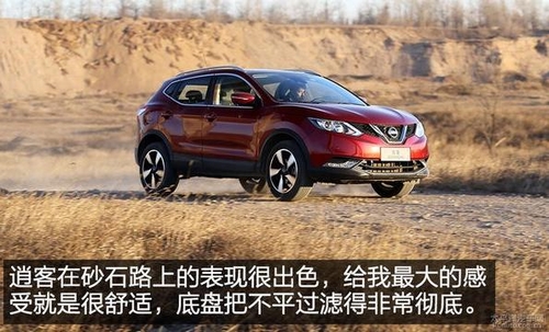 砂石路体验 这次我们还带着逍客来到了一片野地儿,烂路上都是一些砂石、渣土以及土坡.虽然这对于一款前驱SUV来说有点儿没必要,这种地儿城市SUV也基本上都不会来,但是既然我们都到这儿了,还是去看看逍客会有怎样的发挥吧.事实上,逍客的表现也确实不俗. 面对第一个土坡时,由于角度有些大,在上去之前我还真有点儿担心逍客的通过能力.在上坡时,逍客的前轮会出现一些打滑,车头也会有些偏转,但是电子系统会很及时地介入并加以控制,再加上2.0L发动机够用的动力,在整个过程逍客表现出了出乎意料的轻松,并且在跨过坡顶时也没有出现底盘剐蹭. 在碎石路面上,逍客也展现出了令人满意的驾驶质感,整体感很强的底盘调校给人留下了非常好的印象.别看路面上有着许多的坑坑洼洼,但是坐在车内一点儿都感觉不到碾过这些不平时底盘会有松散的感觉,哪怕是高速,也感觉不到会有脱离感,整体刚性也很不错,没有多余的杂音传到车内. 总结: 逍客在外观上的变化可以说是翻天覆地,这些都要得益于日产全新的家族式设计,潮流、时髦了许多.而在性能上,逍客也展现出了能够满足日常使用的水平,毕竟2.0L发动机的排量摆这儿呢,家用完全绰绰有余,而且还有充足的动力还额外保证逍客可以在野外走上一圈儿.全新逍客整体上还是在进步,但是也有些颇为遗憾的地方,比如顶配的旗舰版上,像电动调节座椅这种常见的配置我们都没有看到,虽然在安全性配置方面有所增加,但是对面将近20万元的售价还得手动调节座椅,不知道有多少消费者会为此而买单. |