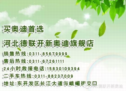 2016年第一期爱车讲堂开课啦! 邀 请 函 尊敬的奥迪车主: 您好! 感谢您对奥迪服务和河北德联开新奥迪的信任与支持!即日起至2016年3月13日,河北德联开新奥迪服务爱车讲堂"倾心绽放,诚邀您亲临现场,体验如春温暖. 开讲时间: 第一场 2016年2月28日10:00-11:30(周日) 第二场 2016年3月6日10:00-11:30(周日) 第三场 2016年3月13日10:00-11:30(周日) 第四场 2016年3月13日15:00-16:30(周日) 讲课地点: 河北德联开新奥迪城市展厅(东开发区长江大道与峨嵋街交叉口路北) 报名时间:即日起至3月13日 报名电话:0311-67261111 微信报名:编辑"爱车讲堂+姓名+联系方式+场次"发送至河北德联开新奥迪官方微信 河北德联开新奥迪旗舰店城市豪华展厅,独具一格的营业规模,融销售、服务、维修及信息咨询于一体,其精彩汇聚的品质与Audi的气质和灵魂保持高度的一致:动感的外观、浓郁科技感与时尚味道的装饰,典雅高贵的品位......,在这里,事无巨细,繁枝末节均由我们贴心打理,您只需体验与爱驾一同成就颠峰的快感! 温暖服务,为您倾心定制; 专业团队,为您时刻准备. 活动请垂询:67261111 祝您生活愉快,一路平安! 奥迪车主们您是不是在为新购爱驾的使用情况心烦呢?对于爱车的保养常识仍然萌萌哒呢?或者您对于爱车的原厂备件的使用仍然不够了解呢?河北德联开新奥迪4S店将为您奉上最最贴心的爱车服务,保障您的爱车畅行无忧;本月2月28日(周日)将为您奉上一场别开生面的爱车知识盛宴,欢迎您届时莅临!? 第一场 2016年2月28日10:00-11:30(周日) 课程安排: 1、奥迪服务内容展示 2、保险理赔 3、奥迪预约服务/24小时道路救援 4、备胎更换 5、换油互动(专用工具、胎压监测、机油检测、保养常识等)等 报名:电话或微信报名赠送奥迪真皮钥匙扣一个 参与本次活动您可以获得什么? 【丰富豪礼】 1.人手礼:坚果礼盒或有机大米 报名电话:0311-67261111 微信转发本文并附带"买奥迪首选河北德联开新奥迪",连续发朋友圈5天,就可以来河北德联开新奥迪领取价值78元的UME影城影票一张 (可观看任意一部2D电影) (注:转发日截止到3月13日,仅限爱车讲堂活动当天领取电影票) |