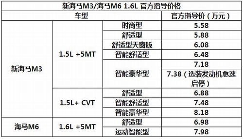 3月6日,海马汽车"M兄弟"--新海马M3/海马M6 1.6L河北区域上市发布会在石家庄万达广场成功举办. 【海马汽车销售有限公司 华北区域大区经理刘毅现场致辞】 海马汽车销售有限公司华北区域大区经理刘毅、河北区域的广大媒体、新老客户莅临发布会现场,共同见证海马汽车旗下两款明星轿车产品"M兄弟"--新海马M3/海马M6 1.6L河北区域上市的盛况. 新海马M3拥有1.5L+5MT、1.5L+CVT两种动力组合,共计8款车型,官方指导价5.58万-8.18万元;海马M6 1.6L车型搭载1.6L自然吸气高效全铝发动机,匹配5MT先进变速箱,两款车型的售价分别为6.98万元及7.98万元. 新海马M3:5万元级高品质家轿 【新海马M3现场实拍图】 新海马M3车身较原售车型有所加长,长宽高4553mm×1737mm×1495mm,采用2600mm长轴距设计,后排腿部空间达901mm;搭载1.5L自然吸气高效发动机,最大功率82kW、最大扭矩147N·m,匹配CVT/5MT变速箱. 新海马M3融合国际流行设计元素,前脸进行全新设计,整车线条流畅;内饰设计与工艺升级,黑银两色内饰搭配自然,大面积采用精细工艺;moofun移动互联人车生态系统、倒车影像、TPMS(轮胎压力监测系统)、6安全气囊、ESP(车身电子稳定系统)、自动空调、自动感应大灯等智能、安全、舒适配置. 产品品质全面升级的新海马M3,凭借智能驾控、宽适空间、精锐设计等综合优势,充分满足年轻用户对高品质有车生活的追求. 海马M6 1.6L:竞争力再进化 【海马M6 1.6L现场实拍图】 海马M6 1.6L进一步完善海马M6车型谱系.至此,海马M6拥有1.6L+5MT、1.5T+6MT和1.5T+CVT共3种动力组合,全系车型增至9款,有效拓宽产品宽度,增强海马汽车在A+级车市场中的竞争力. 海马M6拥有同级领衔的"互联+运动"双重属性,搭载moofun移动互联人车生态系统,是CTCC中国房车锦标赛超级量产车组唯一中国品牌参赛车型;外观采用鹰翔式前脸、利刃腰线+内凹线设计,整车外观流畅、时尚动感,风阻系数低至0.28. 海马M6应用多项超越同级的主被动安全配置,打造360°全方位的安全移动座舱,智行主动安全系统集成ESP电子车身稳定系统、TCS牵引力控制系统、HBA制动辅助系统、全方位倒车雷达、倒车影像等;全维周密被动安全系统集成3H高刚性车身、SFD碰撞系统等.此外,带户外温度显示的自动空调系统、带防夹功能双开启电动天窗、带电加热外后视镜电动调节、灰尘和花粉过滤器、日间行车灯、"follow me home"大灯延时系统、GPS智能导航系统、环绕式影音娱乐系统等丰富配置,共同营造超越同级的智能舒适驾控体验. 智享生活 潮流驾到 新海马M3和海马M6 1.6L均搭载moofun移动互联人车生态系统,是海马汽车在互联网汽车领域先人一步,对味年轻时尚主流消费群体的全新迈进.通过moofun系统,用户可以通过All in One的app,实现车管理、车控制、车服务、车生活四大功能,从而构建新型的人车生活全新关系. "双免政策"钜惠河北 另据了解,即日起至3月25日,河北区域消费者凡购买新海马M3、海马M6全系任一车型,均可享海马汽车"双免政策",即购置税全免和2年分期利息全免,购车立省万元. 新海马M3和海马M6 1.6L车型,是海马汽车基于当前主流消费群体用车习惯,对味其个性购车需求,对旗下产品的丰富和升级.相信,随着产品力的进一步优化,海马汽车在河北区域将会有更加抢眼的市场表现,给消费者带来更加多元的购车选择以及更优质的产品服务. 海马汽车销售服务店--河北海兰汽车销售服务有限公司 销售热线:0311-86025515 地址:石家庄市裕华区金利街42号 微信二维码: |