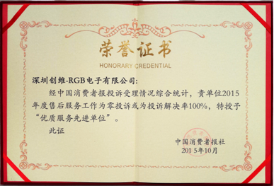 2015年,全球彩电市场环境异常恶劣,无论是国内还是海外市场的开拓,前进的每一步都是如履薄冰。即便如此,创维依然能够保持逆势增长,在激荡的市场中脱颖而出,并且取得了九年蝉联第一的宝座! 纵观彩电行业,服务在企业中发挥的作用举足轻重,也是支撑企业在行业中立足的基本条件。创维在服务领域一直走在行业的前端,也在过去的一年取得了累累硕果,让我们一起来分享2015年创维服务取得的荣誉。 奖项一:全国售后服务十佳单位 获奖时间:2015年9月 颁发机构:中国商业联合会、中国保护消费者基金会 关键词:连续5届、服务十佳 上榜理由: 真正的用户体验是从用户购买产品那刻起才刚刚开始,因此创维在加大产品创新力度的同时,深耕服务、强化服务。在传统的送货、安装和维修服务基础上,提供给用户超过期望的服务,把更多的精力放在了服务意识、包装标准、配送时效、货物跟踪、服务规范、信息交互和售后关怀上的每个细节。 奖项二:优质服务先进单位 获奖时间:2015年10月 颁发机构:中国消费者报社 关键词:投诉解决率100% 、服务先进 上榜理由: 实现投诉闭环处理,用户投诉解决率100%。强化用户投诉处理组,针对服务领域纠纷进行专项处理,建立健全用户投诉处理方法和责任制度,网站、微信、微博、电话等渠道投诉都由专人负责跟进处理和落实,第一时间调解消费纠纷,真正为用户排忧解难,确保用户投诉能够得到快速、有效地解决。 奖项三:中国电子信息行业用户满意企业 获奖时间:2015年12月 颁发机构:中国电子质量管理协会 关键词:连续七年、用户满意 上榜理由: 围绕4K、OLED、GLED电视用户,专设"高端产品专家客服",为其提供涵盖产品功能了解、技术咨询、调试指导及日常维护保养等方面的高端服务。紧跟时代潮流,早在2013年就推出"创维服务"微信公众平台,用最简单、最便捷、最快速的方式满足线上、线下用户的服务需求,可随时随地查询服务状态和进度,有效提升用户体验。 奖项四:全国质量诚信品牌优秀示范企业 获奖时间:2015年3月 颁发机构:中国质量万里行促进会 关键词:高端体验 优秀示范 上榜理由: 近几年,创维在服务标准及质量方面一直严格要求,力争从细致到极致。用户决定选购创维产品后,只需拨打全国统一服务热线,剩下的物流配送、安装调试、增值服务、延保和代收货款等业务都会由创维服务人员迅速一站式的完成。从用户体验的角度出发,杜绝出现长时间等待、频繁联系等情况。在这个过程中,创维服务人员严格执行45分钟高端体验式服务标准,内容涵盖了从进门前的问候,到安装前的开箱、安装过程中的打孔、安装后的定位与卫生清洁,再到增值服务、延保服务、产品体验、保养常识介绍和温馨告别等。 |