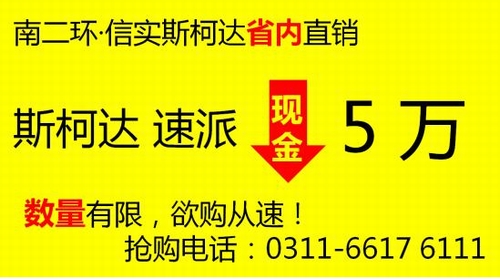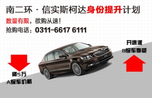 信实斯柯达,速派现金直降5万元! 数量有限先到先得! 用A级车价格,买到B级车享受! 因为数量有限,欲购从速! 抢购热线:0311-66176111 地址:石家庄市建通街与塔南路交口南行100米路西 |
