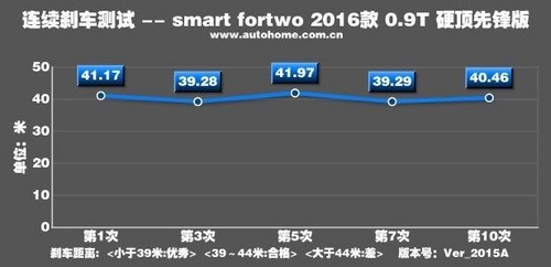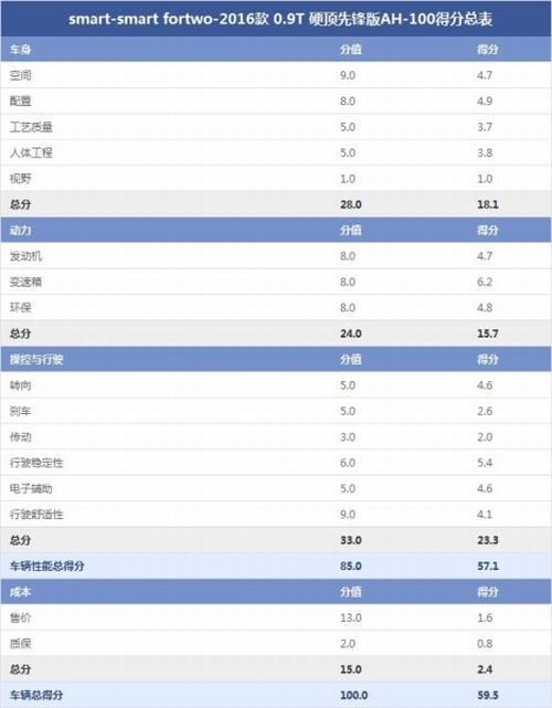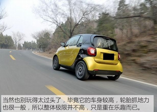 换一种玩法 即使开着这台smart去跑山,乐趣也是满满的.当然,我所指的是下山,毕竟90马力应付上坡还有一定难度.而下山就不一样了,马力会变得不那么重要,车轻才是最好的武器.即使它的前胎只有165mm宽,但这辆小巧的后驱微型车并不会有明显的转向不足,乘客刚好坐在车辆中心的位置,底盘表现得很均衡. 唯一令我担心就是smart瘦高的车身造型,尽管它比你想象的要稳定得多,但在面对急弯时还是谨慎为妙,万一发生侧翻就为时已晚了.还是把更多精力放在入弯刹车和出弯加速上吧!略微不平的柏油路面偶尔会令车身弹跳,前轮抓地力在有和无之间无规律切换,考验你的是对于车轮动态的及时把控.在这方面,smart绝对可以通过踏板和转向给你直接的反馈,此时若配合及时的手动降挡,它便可以让你玩得很开心.这里再插入一组刹车测试成绩. 100-0km/h刹车测试 smart的刹车还是比较令人放心的,虽然轮胎窄,但是毕竟车轻,刹车系统所承受的负载没那么大.然而不得不提的是,如果在较为颠簸的路上,也不要太过放肆.因为smart的悬架比较硬,轻盈的车身很容易被弹起.一旦轮胎离地,肯定会增加刹车距离. 也许你会说,换做1.0L的smart,同样可以这么玩.然而一旦出弯之后踩下油门的那一刻,之前所有的乐趣都会随着1.0L孱弱的动力烟消云散,相反0.9T则有能力让这种乐趣持续下去. 在18米绕桩环节,这台smart给我留下了前所未有的绕桩感受.短小的车身让你无需再顾忌车尾的动态响应,因为它根本就没有车尾.坦白讲,我从来没觉得桩桶之间的距离如此长过,在绕过下一个桩桶之前我甚至有时间思考一下"今天中午该吃点什么?",它以最接近直线的跑法完成了绕桩测试.也许它的极限速度并不高,但是绕桩过程就是这么简单. smart操控与行驶部分得分 smart的玩乐性明显高于舒适性的,它的悬架很颠,过减速带时一定要放慢、再放慢车速,不过支撑性也变得更好了,从而提升了操控性.另外,由于车身小巧、轻盈,所以它的负载变化更小,响应也更加迅速,唯一不足的就是噪音感受太差了. AH-100得分总表 这台smart 0.9T最终59.5分的总得分可能不及大多数同价位车型,毕竟它的空间很小,配置也不算高,舒适性一般,况且它还卖的那么贵,光成本这一项就丢掉了不少分数.不过话说回来,smart本身就是一款小众车型,不是以性价比为卖点,选择它的人一定是感性的,一定是不在乎空间的.smart就像是成年人的一个大玩具,在特定的情况下能够带给驾驶者不一样的感受. 花15.6万选择这样一款小车,确实需要真爱和勇气,一般人很难理解.坦白讲,相比之前试驾过的smart 1.0L,或许我更能接受这台smart 0.9T,因为除了代步之外,它还能带给我更多快乐.如此来看,多花这2万元其实很是很值的. |
