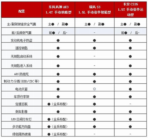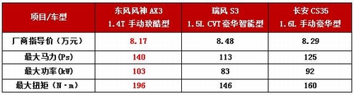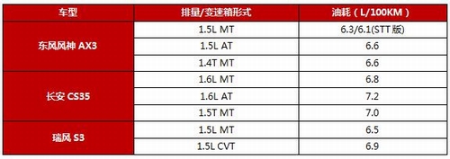 随着国内SUV市场竞争的日趋激烈,越来越多的自主品牌SUV加入其中.自主SUV不仅价格实在,空间大,各种配置表现均可满足家用需求,综合性价比非常高.今天我们就来看看,目前市场上三款火爆的、7万元就能开回家的SUV--东风风神AX3、长安CS35、瑞风S3,从空间、动力和油耗几方面来比一比,谁是7万元最超值SUV. 空间足够大,居家旅行两相宜 从车身尺寸上来看,AX3一骑绝尘.但在轴距上,东风风神AX3独领风骚.2620mm的超长轴距在同级中遥遥领先.东风风神AX3后排平地板的设计,更是增加了后排乘坐者的舒适度. 除了车内乘坐空间的舒适度,行李箱的容积大小对于出行也是非常重要.不仅需要满足日常生活出游需求,偶尔去商场血拼装个货,也必须妥妥的不费力.三款车辆都可以放倒后排座椅,这极大地提升了空间的使用率.从表格数据来看,东风风神AX3后备箱拓展容积达到了1310L,径深达到了1700mm,不愧为"空间大+". (东风风神AX3后备箱轻松放下双人床) 动力足够用,各种路况无压力 对于用户而言,动力是作为一款优秀SUV的基本素养.东风风神AX3是第一款同级SUV中携带T动力的车型,随后长安CS35也紧随潮流.目前三款车中,瑞风S3仅提供一个动力选择. 东风风神AX3 1.4T车型搭载的A14T发动机,最大功率和峰值扭矩分别为103kw、196N·m,动力表现更加强劲. 同价位车型相比,AX3动力同级领先 (东风风神AX3 1.4T发动机技术水准) 同比而言,长安CS35搭载的BLUE CORE 1.6L发动机,最大功率和峰值扭矩分别为92kw和160N·m.虽然动力参数提高了,但是油耗也增加不少,在日趋提倡环保,绿色生活的大环境下,这也是广大消费者不得不考虑的一个问题.长安1.5T发动机的最大功率和峰值扭矩较AX3的略高,分别为115kw和215N·m.不过,东风风神AX3的1.4T发动机,在发动机1500rpm低转速时涡轮即介入,保证了更平稳的起步与更平顺的动力输出,在山区道路的爬坡方面,也更加轻松. 油耗足够低,省钱省力又省心 除了空间和动力,在车型的选择上,油耗也是用户所看重的一点,这毕竟跟咱广大消费者购买后的实际花销相关.从下面的表格数据中,我们可以发现,在油耗上,东风风神AX3当之无愧的是节油、省钱小能手. 通过对比可以明显看出,东风风神AX3的油耗表现在各个系列上都表现抢眼,百公里综合工况油耗最低只有6.1L.如此低的油耗,作为平日生活中的代步之选再合适不过了. 实用配置够齐全 自主品牌很厚道 从上表不难看出,作为7万元级别的SUV车型,自主品牌确实很厚道,在很多实用性配置上尽量满足了消费者的用车需求,尤其是东风风神AX3在很多实用性配置上都是全系标配. 作为当今市面上颇受欢迎的三款SUV,东风风神AX3、长安CS35以及瑞风S3都有各自的优势.不过就整体实力而言,东风风神AX3还是略显优势,尤其是在空间和油耗的表现上,可以被称作是7万元级别中最超值SUV. |