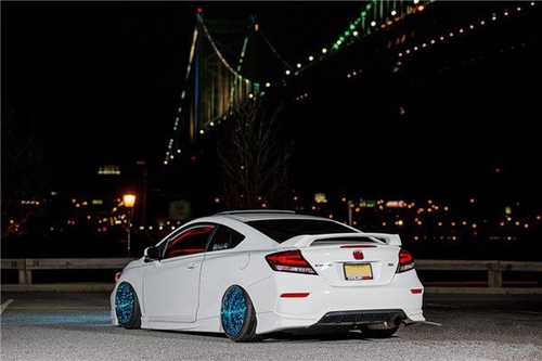 第十代思域于前段时间正式公布了售价,12.99~16.99万的价格让很多人直呼良心,特别是入门版居然还是全球首发的手动挡车型,这对于无数热爱驾驶和改装的狂热份子而言,简直就是逼他们出手买车的节奏.稍许时日,十代思域毫无疑问会成为改装界新一轮的热门车型,不过现在我们还是来看看海外车友改装的第九代思域SI吧. 第九代思域可以说是一款失败的车型,和当初八代车型给世人的惊艳相比,九代仅仅轻微调整了外观,动力系统也没有升级,这也导致思域几乎在全球市场折戟.东本曾经国产过搭载2.4升K24Z7引擎的九代思域SI,207马力和6速手动挡的组合也可以说对得起SI这个名头,奈何东本宣传的缺失,导致这款车型在国内知之甚少,最终停产,二手车价格反而攀升,也是无奈. 海外版的思域si采用了更为动感的双门遛背造型,同样搭载了207马力的2.4L自吸引擎,完全就是一副跑车的架势.本期这辆车是2014款思域SICoupe,经过全面改装之后,几乎成了一台跑街的艺术品. 作为一个资深本田粉,外观方面,车主直接换上了本田原厂的全套性能套件,包括:前唇,侧裙,后包围以及底盘扩散器.定制的Type R大灯和AudiLED灯带让整部车显得更加时尚动感,排气则升级为Skunk2 70mm MegaPower RR 3-inch尾排,低调之中充满了TYPE-R的性能气息. Air Force气动悬挂和AutoPilotV2气动管理系统的加持让这部思域拥有更加优秀的视觉效果,轮毂刚好吃到轮拱上方展现出来的是标准的HellaFlush姿态.规格为18×9.5的蒂芙尼蓝色Avant GardeF241轮毂匹配的是一套205/35/R18的Achilles轮胎,搭配白色车身,给人的感觉很是干净素雅,清新脱俗. 打开车门,绝大多数人都会被满眼的红色内饰给镇住,毫无疑问这是相当夸张的配色,而且改件价格不菲.包括定制了SI标识和六边形纹路的前后前后座椅、中控面板和车门板在内的覆盖件都是高端定制的保时捷红色皮革;车顶、车柱、和其余一些部位则采用了来自法拉利的alcantara材质覆盖.和清新的外观相比,大面积红黑搭配的风格显得相当激情,运动质感提升明显,不过很显然这也不是所有人都喜欢的风格. 车尾箱依然是和内饰完全相同的红色风格,Kicker功放和高音扬声器搭配CompvR生产的10英寸和8英寸的低音炮组合,带来相当不错的音质感受.除此之外,定制的饰板下方还内嵌了一台产自中国的联想平板电脑,居然不是ipad,这也是令人意外. 虽然外观走的是不折不扣的HellaFlush路线,但车主并没有对不起"SI"这个标识,CT Engineering机械增压器和K&N Typhoon 69进气搭配重写的ECU程序让这部思域拥有高达287马力的输出,0-100公里加速时间不到6s,作为一台走街用的前驱车,这个性能表现不失水准. |