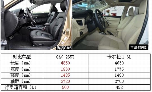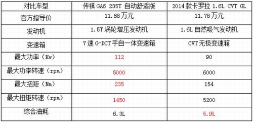2016年一季度,广汽传祺销量继续高歌猛进,累计销售8万辆,同比增长171%。然而传祺前进步伐还在提速,新品不断。近日,搭载全新动力总成Ti POWER的GA6 235T上市,以B级车空间、丰富配置进击家轿市场。对于不少消费者来说,传祺GA6是传祺最漂亮的车型,推出1.5T版本拉低售价诚意满满。见惯家轿市场“老几样”的消费者,也期待中国品牌新势力。 接下来,我们将传祺GA6与长期占据热销榜前列的卡罗拉进行对比,看本土新势力怎样与家轿市场“老炮”一决高下。此次对比选取2014款卡罗拉1.6L CVT GL与传祺GA6 235T 自动舒适版两款价位相当的车型,分别从动力、空间、底盘悬挂、配置几个方面进行较量,看看两款车型谁的综合实力更强。 动力:GA6 235T大扭矩、低油耗;卡罗拉动力满足家用 传统燃油车发动机的小排量、高效能的“T”动力趋势正愈演愈烈。传祺GA6搭载TiPOWER第二代动力总成,235T发动机采用低惯量电控E-Turbo涡轮增压器、GCCS燃烧控制专利等领先的世界先进技术。在保持低油耗前提下,235T发动机在1450rpm即爆发235Nm峰值扭矩,优于2.5L自吸发动机。 日系车在动力总成方面向来便比较保守,丰田卡罗拉搭载一款1.6L的自然吸气发动机,配合CVT变速器,优点在于动力输出比较平顺,比较舒适省油。可以满足对于动力没有太多需求的消费者。 空间:传祺GA6比卡罗拉大“一圈”驾乘空间更出众 与拥有标准B级车身材的传祺GA6相比,A+级卡罗拉显然处于弱势。GA6车身长度上超出220mm,宽度多出55mm,充分保证车内驾乘空间,2720mm的长轴距释放了后排乘坐人员的腿部空间。 对于喜欢“高大上”的中国消费者来说,传祺GA6不单单是空间充足,开出去也更“拉风”,更有面子。 悬架:GA6双叉臂运动、舒适兼备;卡罗拉底盘成本较低,与性能无关 传祺GA6搭载同级少见的前双叉臂后多连杆悬挂,这是属于高端轿跑车的标准搭配,操控与舒适达到完美平衡,过弯扎实,地面滤震干脆,在同级车中可谓无出其右。 卡罗拉底盘属于明显的的家用取向,搭载前麦弗逊,后扭力梁悬挂半独立悬挂,成本较低,常用于小型车当中,占有车底空间较小可以为车内提供更好的空间,但是影响了操控稳定性能和舒适性。 配置:传祺GA6 235T配置完爆卡罗拉 整体性价比高5万起 配置向来是中国汽车品牌的加分项。从上表不难看出,传祺GA6整体配置丰富,尤其是在安全方面,搭载了博世最新ESP、上坡辅助、牵引力控制系统等核心配置,配备真皮多动能方向盘、行车电脑显示屏、车窗防夹手功能、17寸米其林轮胎与后座出风口等人性化科技配置,豪华档次感提升不少。 主要配置上,所选的卡罗拉对比车型,可以说是一款仅仅能满足日常使用的车型。包括一些比较有必要的配置,如车身稳定控制系统、车窗防夹手、多功能方向盘、后座出风口等配置都缺席卡罗拉。 结论:在与卡罗拉的对比中,无论是颜值、空间、动力、操控性能还是性价比上,传祺GA6都要更胜一筹,综合性价比非常高。卡罗拉作为热销的紧凑型轿车,品牌和口碑影响力不可小觑,只是考虑到其简陋的配置和仅仅够用的动力,相比传祺GA6优势全无。在同等价格区间内,传祺GA6 235T足以完胜卡罗拉。 |