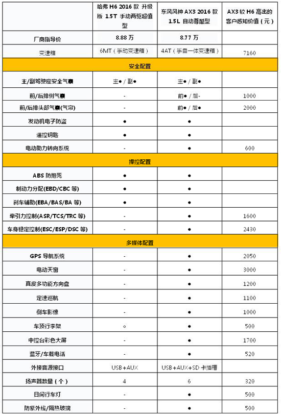 热播剧《太阳的后裔》已经完结,但是剧中"全民老公"的撩妹技能,就像初夏的温度,日益攀升.年轻小伙伴们也是按耐不住内心的骚动,酝酿着向自己的女神表白,或者是成功撩到自己心仪已久的妹纸.用什么样的实力到达成功的彼岸?也许这之间就只隔着一辆撩妹SUV的距离. 说到这里,大家不妨看看老牌劲旅哈弗H6与新晋小生东风风神AX3.哈弗H6因3月份的官降引发不少关注,而东风风神AX3以其大+优势自上市后,受到不少用户青睐.开哪款车出去"撩妹",成功系数更高?今天就跟小编一起来看看. 撩妹要颜值:硬朗H6 PK 时尚AX3 要想撩到妹,外型拉风是第一位. 哈弗H6外型整体偏方正、刚猛.车头线条圆润绵柔,侧面线条刚毅有力,尾部削减了一些筋线,形成较为简约的视觉效果.车头的镀铬装饰和车尾的钣金折线,为H6增添了硬朗的感觉. 东风风神AX3在外观造型上,则拥有更为前瞻性的创新设计理念.锋锐动感时尚的"X"符号造型设计语言,前低后高的整车姿态,让AX3流线型更强,尽显时尚灵动之风.对于软妹子们而言,AX3恐怕更能激发她们内心的怜爱之情. 另外,东风风神AX3 长宽高尺寸为4518mm*1740mm*1562mm,相较于哈弗H6的4640mm*1825mm*1690mm,个头稍小的AX3也少了些许钢猛之气,对于年轻的小情侣们来说,更容易随心驾驭. 撩妹要空间:AX3后排座椅可平放180°,可放双人床 约上心仪的妹子,去野外聚个餐、数个星星,绝对是提升感情的不二法宝.所以,撩妹不仅要颜值高,内部空间也要大. 东风风神AX3轴距为2620mm,与哈弗H6的2680mm相比,略小一点.但是从实际体验来看,无论是第一排的头部空间,还是第二排的腿部空间,AX3与H6的表现相当,对于驾乘人员来说,都比较舒适.AX3后排座椅折叠与后备箱平齐,纵深居然高达1700mm,行李箱拓展容积1310L,简直同级无可匹敌,AX3后备箱能轻松放一张双人床,撩妹更实用. 撩妹要干货:AX3配置丰富,价值高出1万多 撩妹是个技术活,有个好帮手,事半功倍自主SUV在配置方面是出了名的厚道,热销的哈弗H6和东风风神AX3又何分伯仲? 从安全配置来看,哈弗H6少了前/后排侧气囊、前/后排头部气囊.操控配置方面,东风风神AX3多出了TCS(牵引力控制系统)、ESP(车身电子稳定系统)等重要配置.在多媒体配置上,GPS导航、中控大屏、蓝牙车载电话、日行灯等时尚又实用的配置, AX3都一应俱全.整体算下来,在这三方面的配置上,东风风神AX3的价值提升了1万多元,非常实惠. 经过以上三方面的比较,哪款车开出去的撩妹成功指数更高一目了然.对于偏成熟稳重的用户来说,可能更喜欢推出已有5年之久的哈弗H6,但对于有一定生活品味与格调追求的时尚青年来说,充满年轻气息的东风风神AX3或许更合适. |