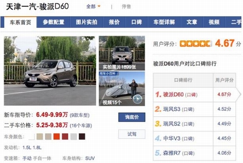 2016年的北京车展,少了“车模”,多了“主播”。但从今年大众媒体关于车展的报道来看,已经可以看出汽车重新成为了车展的主角,这是值得欣慰的事情,也说明中国的车市在逐步走向成熟。毕竟,汽车对于大部分家庭而言,偏离了交通工具的属性就变得毫无意义。 车展上最吸引眼球的当然还是那些豪车和概念车,它们是车展上的明星,闪光灯和镜头的焦点。但高昂的价格只能是极少数人手上的玩具,距离普通消费者太过于遥远。其实车展上真正的明星应该是那些十万元以内的优秀产品,在有限的成本下,制造品质可靠,运行经济,实用性强的车型,这样的产品才考验厂家功力。现在十万元以内的车型可选项也越来越多,七八万元就能够买到一台适合三口之家使用的,具备A0级轿车无法比拟的空间和通过能力都不错的国产小型SUV。 国产小型SUV已成为兵家必争之地,一汽,长安,长城,华晨中华,奇瑞,江淮….各大厂家都推出了应对这一细分市场的产品,比如一汽骏派D60,长安CS35,中华V3,长城H2,瑞虎5都是这个级别颇具竞争力的选手,其中长安CS35,瑞风S3,中华V3取得了不俗的销量,但根据用户反馈,这一级别质量口碑表现最出色的却是相对其他几位后来才加入的一汽俊派D60。一汽骏派D60虽然没有占到市场先机,但却依靠品质取胜,可谓长江后浪推前浪! 金杯银杯,不如消费者口碑 老话说的好,金杯银杯不如消费者的口碑。在汽车之家上针对这一级别SUV的排名中,骏派D60是以4.67的分数排名第一。 此外,易车网针对小型SUV的一个综合口碑排名,骏派D60以4.84分拿下这一细分市场最强的名号。 骏派D60比起同级某些抄袭模仿的对手而言,在外观方面具有自己的原创性,对于一台售价不高的SUV车型,外观并非其最大吸引力所在,消费者更关心的还是实用性配置,空间大小,机械品质和经济性表现。 丰富的实用装备,充满诚意 骏派D60作为后起之秀,内饰装备方面自然不会比前辈们落伍,中控台上的大屏很显眼,整个中控台微微朝向驾驶者,这在过去是一些经典运动车型才有的设计。 GPS,蓝牙电话, U盘接口一应俱全,许多价格数倍于骏派D60的车型娱乐配置也不过如此,其中USB接口不仅可以读取U盘里面的音乐,还可以当作手机的充电接口,只需一根手机数据线,不需要占用点烟器接口即可实现手机充电,很方便。 |