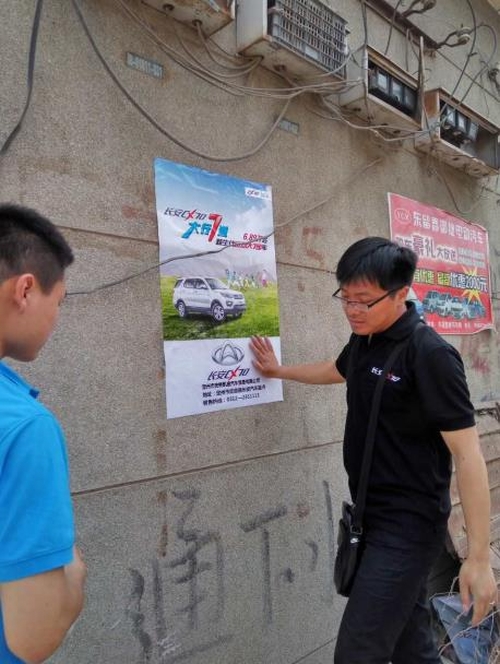 长安CX70百车千城万里行保定站在安国、定州、望都三地连动,炸响燕赵!有这么一群含辛茹苦、栉风沐雨的长安人,每日废寝忘食依然干劲冲天,每日停辛伫苦依然兢兢业业,只为实现一个梦,一个能让您能省时省力省心看车的梦。2016.5月29日,长安CX70大型巡展活动“百车千城万里行”保定站在万博广场隆重启动。香车盛宴,颜值饕餮。 全体长安商用工作人员保定站启动仪式合影留念 出征的“勇士们”,霸气无敌! 5月30日,在历史古都韵味十足的保定市定州市,长安CX70华丽亮相,屹然而立。 是王者,是暖男,亦是硬汉! 长安汽车销售有限公司河北大区市场经理李承敏先生亲自指导工作 士气大振!准备出发! 在乘用车大行其道的中国汽车消费市场,长安商用车一直以其独特品牌魅力和产品实力吸引着消费群体。而随着家庭结构的变化、第三产业的发展、国内的用车成本等因素,长安商用转变发展布局,开始向多动能市场转变。 在百车千城万里行保定站,长安全体工作人员为充分响应三四线城市消费族群的需求,以“蹲在地上做营销”的方式与目标受众进行最简单直接的面对面互动。 长安汽车销售有限公司河北大区市场经理李承敏先生不辞辛苦贴活动海报 “圈车活动”,全民参与,行程热潮 工作人员耐酷暑战疲劳,向路人发单页,讲活动明细 |