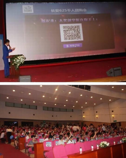 “厂家直销 年中大促”——长安625大型团购会于2016年6月25日下午在石家庄中国大酒店河北会堂圆满结束,活动当日长安商用明星车型长安CX70、长安欧尚等都以前所未有的价位出售,本次活动销售成绩喜人,314辆车再创销售新高,客户不仅以实惠的价格拥有心爱座驾,更是抽得大奖满载而归,在客户的笑容里,我们看到的是对我们工作的成果的肯定。 各地新老客户慕名到场,真是人山人海,热闹非凡啊!绚丽的表演、趣味的互动、给力的政策,激烈的竞拍等环节将现场氛围带入阵阵高潮。太多的形容词小编也形容不出来现场的热烈氛围,咱们直接上图。 长安汽车为周边客户提供免费大巴接送,真是贴心 看这签到的人~ 签到就送礼品 客户们都已入座!奈何来的人太多,座位不够用,我们在此表示歉意! 千人摇动手机~岂止是壮观! |