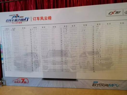 硕果累累丰收篇 此次订购会,长安厂家拿出满满诚意!全系车型无论是价格还是优惠,都突破往日极限!厂家直销,降价到冰点!激情夏日,惠动全场!短短两个小时,便斩获满满订单!这速度,这人气,非长安汽车莫属! 排队交定金~ 工作人员写订单写到手软 满满的订单风云榜,大获全胜! 此次交车盛典是长安CX70“百车千城万里行”邯郸站的完美收官之作,也是长安CX70“百车千城万里行”河北区域的最后一站!如此大规模的活动,用心才能获得良好的口碑和成果! 长安CX70“百车千城万里行”活动有力提升了长安CX70在河北区域的销量,6月长安CX70的零售环比较5月增长82%!增长趋势强劲!征途还未结束,长安CX70会继续在车界大行7道! 长安人,长安车的足迹 恭喜长安CX70“百车千城万里行”邯郸站订购会暨百人交车盛典圆满落幕! |