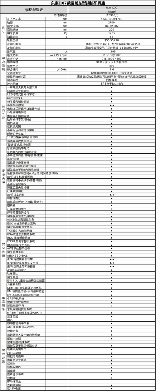 目前,国内自主SUV市场竞争异常激烈,作为后起之秀的东南DX7却凭借强大的产品力脱颖而出,保持热销态势,赢得众多消费者关注。一路砥砺前行,在历经重重考验和精心打造下,DX7实力更加雄厚。如今,东南汽车再添利器,为荣耀而生的DX7荣耀版震撼上市!它将以全新的姿态向着更加巨大的荣耀前进,带来更加实用的品质体验,让有车生活变得更加尊贵与优质! 对于大部分追求实用的消费者来说,外观、配置、空间、安全是其购车最看重的因素,荣耀版也正是为此而来。而且为回馈广大消费者,东南DX7推出了“东南DX7钜惠购车季”活动,现在购买DX7全系车型,即可享受万元豪礼大放送! 锦上添花,高顶配满足多元需求 东南DX7自上市以来,其高性价比的产品优势深入人心,此次推出的荣耀版车型,正进一步满足消费者多元化的需求,为消费者提供更超值的购车选择。荣耀版的最大亮点在对原相应车型的配置进一步升级,增加了车顶贴附式行李架、一键开启大视野全景天窗两大实用性配置。贴附式行李架,不仅可以起到装饰、美观的作用,还可用来固定后备车厢放不下的行李,最多可承重60KG重物,所以体积大的行李、自行车、折叠床等等都可以放在行李架上,又方便又安全。全景天窗则不仅让车内更加敞亮,也更好地营造了宽阔的空间感,享受一览无余满城美景的乐趣! 荣耀登场,新成员延续一贯优势 作为DX7产品阵容的新成员,荣耀版承袭了DX7新时尚、全配置、大空间的产品优势。在DX7身上,宾法“流动的力量”的设计神韵被展现的淋漓尽致。犀利动感的前脸、线条饱满流畅的车身,前进气格栅配合钢琴烤漆处理,整体视觉效果颇具“雕塑感”,原创性极高。在内饰方面,中控台大面积使用软性材质包裹,做工精致考究,棕黑拼色皮革和多处镀铬装饰条给这辆车营造出了时尚的撞色设计。 荣耀版的颜值值得肯定,空间表现也不赖,整体车身尺寸为4530mm/1900mm/1700mm,轴距2700mm,无论是车宽还是轴距,在同级车型中均处于较高水平。在保证宽敞舒适乘坐空间的同时,荣耀版的储物空间也十分丰富,将后排座椅放倒后可扩充至1180L,极大满足居家旅行载物需求。如此爆表颜值与宽敞空间,十足吸睛! 对于众多追求实用性的消费者而言,荣耀版领衔同级车型的丰富配置必会赢得众多青睐。它配备东南自主研发的SEMI-II多媒体人机交互系统,让车主在驾驶过程中充分领略人性化科技的魅力,享受智能乐趣的生活方式。除此之外,荣耀版无匙进入/一键启动、倒车雷达等实用配置应有尽有,AUTO HOLD自动驻车等高端配置也毫不落下,ABS、EBD、BAS等常规安全配置更是为消费者提供了更舒适与人性化的驾驭体验。 作为出行工具,汽车安全自然是广大消费者的关注重点。荣耀版沿袭DX7 Cafe+全时智护安全系统的高安全优势,将领先同级的主动安全、被动安全、信息辅助安全系统以及车内环保四大模块有机结合,全方位保障车主及其家庭出行安全,五星安全认证,值得信赖。 一贯的造车理念,升级的实用配置,DX7荣耀版的华丽登场,既满足了年轻消费者追求个性时尚的需求,又符合务实型消费者对产品品质、实用性、性价比的基本要求!接下来,DX7荣耀版将会跟随着东南汽车,走向新的征程,不断完善产品品质,迎来销量口碑双丰收的荣耀新元年! |