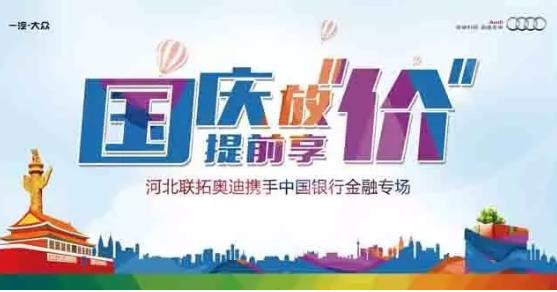 马上就要国庆了, 有木有觉得很激动! 趁国庆长假回家看看亲人吧! 回家?没有车怎么能行! 9月24日,河北联拓奥迪携手中国银行特推出金融购车专场。 现场超多款金融特惠车型,超低价格,现车销售! 车型+贷款双重优惠,强强联合,帮您圆梦联拓! 【活动时间】 9月24日 | 活动地点 | 裕华路东二环交口西南角 河北联拓奥迪展厅 | 报名热线 | 0311-85031641 活动亮点提前看 四重好礼送不停 见面就送礼品,这也太豪气了!活动当天,凡进店并成功签到的客户即可获得河北联拓为大家准备的精美笔筒一个。 微信互动,幸运的小伙伴将会获得河北联拓为大家准备的奥迪小熊钥匙扣和奥迪打火机,祝您好运哦~ 现场成功订车并签约中国银行贷款的客户,即可获得联拓为大家提供的奥迪精品小熊毛绒玩具一个。 订车客户还可参与砸金蛋,赢取精美订车礼活动。 河北联拓奥迪特许经销商 地址:石家庄裕华东路166号 热销专线:0311—85031641 服务专线:0311—85081648 贷款热线:13932165284 租赁电话:18931186660 24小时救援电话:13930186965 |
