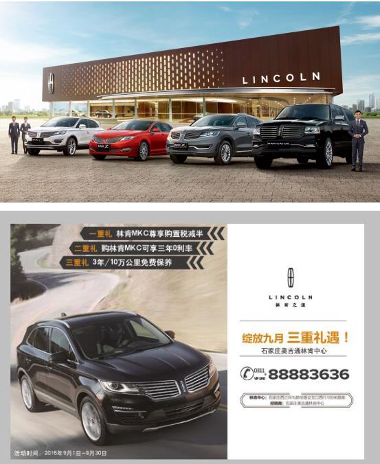 时维九月 序属三秋,石家庄奥吉通林肯中心九月绽放!9月23日-25日这个周末,石家庄北城国际小区,专属林肯豪车品鉴会盛大开启。重重惊喜,等你参与。你不必再担忧去店路途的邀远,不必担忧路上堵车耽误时间,种种担忧我们都为您轻松排解,我们此行将豪华典范送到您身边,让您以最简单,最直观,最省时间的方式来参观品味。零距离接触林肯品牌,感受豪华总统座驾带给您的震撼,细细品味百年传承的林肯之道。9月23-25日,北城国际,我们不见不散! 活动时间:9月23-25日 活动地点:石家庄北城国际小区 参展车型: 九月绽放,购车有好礼!石家庄奥吉通林肯中心林肯全系车型给力促销中! 购MKC尊享九月购车三重礼,购车尊享购置税减半!更享受三年0利率,更有3年/万公里免费保养!领航员现车98.88万!MKZ购车赠送豪华大礼包,MKX现车充足,金融购车尊享厂家贴息政策! 全省超低售价、多重灵活便捷金融促销、豪华装具大礼助您轻松拥有精英座驾!此次外展活动为期三天,石家庄奥吉通林肯中心,诚邀您参加! 地址:西三环与新华路交叉口西行100米路南。 石家庄地区:0311-88883636 沧州地区:18031719987 邢台地区:13623217151 张家口地区:18230039009 廊坊地区:13313363396 |