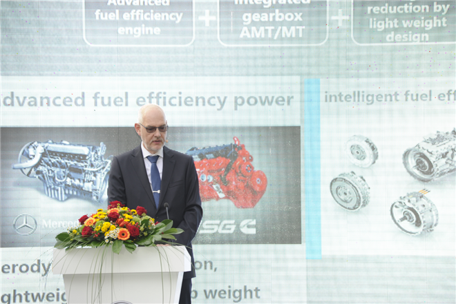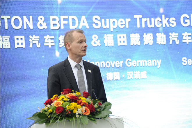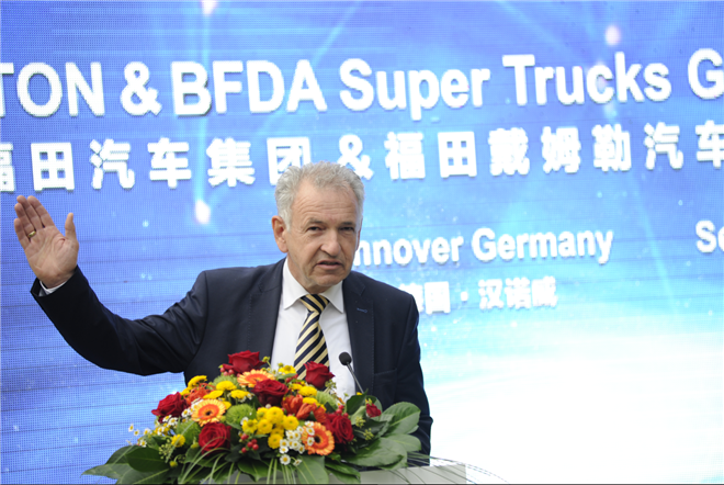 德国汉诺威当地时间2016年9月22日17:00(北京时间23:00),正值第66届德国汉诺威商用车博览会(IAA)期间,福田戴姆勒汽车与德国戴姆勒、美国康明斯、德国采埃孚、德国大陆等“超级卡车全球创新联盟”成员以及全球重卡用户、经销商及新闻媒体约100人,在德国汉诺威举行了欧曼EST超级卡车全球上市仪式。这预示着,由福田戴姆勒汽车历时4年欧洲研发,面向全球市场打造的欧曼EST超级卡车,将进一步提升福田戴姆勒汽车的全球影响力,拉开欧曼重卡参与全球竞争的战略序幕。 福田戴姆勒汽车选择在欧洲举行欧曼EST超级卡车全球上市活动,充分彰显了其对产品及技术的信心。“欧曼EST拥有更低的油耗、更高的可靠性,可以满足全球用户的需求,可与高端重卡品牌抗衡。我相信,随着欧曼EST全球上市,并凭借合资股东双方的支持以及与所有优秀供应商伙伴的合作,福田戴姆勒汽车将进一步提高市场竞争力,进入全新的超级卡车时代。”福田戴姆勒汽车总裁周亮在全球上市仪式现场表示。 【福田戴姆勒汽车总裁周亮发表讲话】 福田戴姆勒以智能化视野寻求重卡的智能突破,抓住世界重卡“智慧变革”的战略契机,收获了世界认可。“采埃孚一直为欧洲各大厂商供应零部件,在与福田戴姆勒的合作中,我们见证了其产品性能的不断提高以及在智能化方面取得的突破。”采埃孚集团商用车事业部全球高级副总裁Joachim Holzner表示。欧曼EST超级卡车采用的采埃孚电控空气悬架、自动变速箱、液力缓速器、超级车队管理系统等技术,全面提升了整车智能化性能。 【采埃孚集团商用车事业部全球高级副总裁Joachim Holzner讲话】 “在智能、高效、互联趋势下,欧曼EST超级卡车一直致力于为用户提供综合解决方案,为助其在未来的移动变革中更好的满足用户需求,大陆集团将源源不断地为福田戴姆勒供应创新技术和领先产品。”德国大陆集团商用车全球总裁Michael. J. Ruf表示。 【德国大陆商用车全球总裁Michael. J. Ruf讲话】 中国贸易促进委员会汽车行业分会会长王侠表示:“随着排放标准的升级和法规的日益规范,商用车市场需要更加清洁、高效、智能的产品,我们很高兴地见证欧曼EST在全球上市,此车型完全满足欧洲标准,预期将有很好的市场前景。” 【中国贸易促进委员会汽车行业分会长王侠讲话】 来自超级卡车全球合作伙伴的认可,无疑充满了对欧曼EST超级卡车在参与到全球重卡未来竞争中的信心。上市发布会上,中国贸易促进委员会汽车行业分会会长王侠、国际年度卡车协会主席Gianenrico Griffini、福田汽车集团常务副总经理巩月琼、福田戴姆勒汽车总裁周亮等领导、以及康明斯发动机事业部道路用车业务执行总监Brett Merritt、采埃孚商用车事业部全球高级副总裁Joachim Holzner、大陆集团商用车全球总裁Michael. J. Ruf等超级卡车创新联盟成员代表,共同启动了欧曼EST超级卡车的全球上市仪式。 【相关领导共同启动欧曼EST超级卡车全球上市仪式】 在全球经销商、用户、媒体的见证下,福田戴姆勒汽车研发副总裁Jens Hamester驾驶着全球首台欧曼EST超级卡车缓缓开出,这也代表着欧曼EST超级卡车在欧洲正式全球上市。 【福田戴姆勒汽车研发副总裁Jens Hamester驾驶着欧曼EST超级卡车缓缓驶出】 福田戴姆勒汽车研发副总裁Jens Hamester介绍说:“欧曼EST超级卡车历时4年欧洲研发、经历1000万公里道路测试,实现了油耗降低5%,可靠性提升26%,智能化提升70%,驾驶室模块、底盘模块、动力模块、电器模块4大模块208项技术升级、TCO降低10%~15%、机箱桥同步10万公里的超长保养里程的性能突破”。 【福田戴姆勒汽车研发副总裁Jens Hamester介绍欧曼EST超级卡车】 “当我驾驶着欧曼EST超级卡车缓缓驶出的时候,我感到无比激动与自豪;作为一名欧洲人,同时作为一名研发者,我亲自见证了欧曼EST超级卡车在欧洲诞生。”福田戴姆勒汽车研发副总裁Jens Hamester表示,“福田戴姆勒依托戴姆勒重卡技术,在研发、质量、制造等技术领域的实现了全方位创新突破,欧曼EST超级卡车立足欧洲研发,面向全球重卡市场的‘智慧’转型,定将成为这次世界重卡变革的弄潮儿。” 【福田戴姆勒汽车研发副总裁Jens Hamester上市现场接受媒体采访】 福田戴姆勒汽车为欧曼EST超级卡车注入了戴姆勒先进的重卡技术及精益求精的制造理念,并集成美国康明斯、德国采埃孚、德国大陆的领先智能技术,使欧曼EST超级卡车具备了“发动机智能管理、智能制动系统、智能车道辅助系统、智能电控空气悬架、智能换挡系统、智能稳定控制系统”等六项前瞻性智能技术,以智能化体系助力全球用户智能运营。 对欧曼EST超级卡车的全球上市,一位来自德国的重卡用户有着自己的看法。“这款重卡无论从外形上还是从技术上,都完全可以与世界重卡媲美;欧曼EST超级卡车的优势在于以欧洲科技研发,以智能化技术提升全球用户运营竞争力。我很期待开着这款智能的重卡奔驰在德国高速上。”发布会现场,一位来自中国山东的用户表示:“欧曼EST超级卡车在欧洲的全球上市,让中国物流运输拥有了一款能替代进口重卡的高端产品。” 【全球重卡用户代表合影】 【国内重卡用户代表合影】 此外,欧曼EST超级卡车在“购车成本、维修成本、轮胎损耗、运营管理、燃油成本、保养成本”等方面实现了TCO降低10%~15%的目标;欧曼EST超级卡车以“超