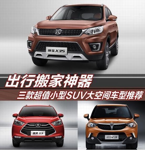 出游需要带的东西多,搬家怎么才能更省力?想找个金杯搬家,但又觉得像是农民工进城,逼格掉了一地;厢式货车又太大,没那么多东西,费钱费力。所以想找一辆既能确保高大上,又能保证经济适用和乘坐舒适的好车,对于出游搬家不仅有面子,还能一路在享受中度过,除了这些再没别的要求。当务之急,着实需要大“装”一下。 目前市场上火热的小型SUV可以说解决了这个难题,无论它的舒适性、驾乘空间还是整车配置优势,对于驾车出游、搬家载货都可以说是家庭出行的不二之选。下面就为您推荐三款在小型SUV市场上的出行搬家神器,看看哪一款更符合你。 绅宝X35 大美秋色如约而至,出游成为人们的首选,载上自己的全部“家当”,尽享舒适大自然的静谧,那就需要有一辆能装能拉的车,才能带上你想带的。而重塑小型SUV新价值标准的绅宝X35长宽高分别为4300mm、1815mm、1640mm,加上同级别最长轴距2670mm,造就的最大宽敞空间优势,无论出游还是日常生活的搬家、运货等需求,都能随心所欲的满足。可以说搬个小家都不在话下。而对于很多有家庭的宝妈出行,婴儿旅行床是必备,而绅宝X35后备箱大空间可以轻松应对,让孩子在外尽情享受跟在家一样的舒适感。 绅宝X35的后备厢,宽1070mm,高910mm,最小纵深720mm,最大纵深1630mm,后排座椅放倒前390L,后排座椅放倒后1200L的超大容积,别说搬个货,拉个家电,出游户外装备,尽可放心的装。 此外,除了拥有大容积后备箱的绅宝X35,还拥有丰富的储物格,进一步提升乘坐的便捷性。绅宝X35的前门板、后门板、挡把前方、手刹旁边都设有储物槽,当然,扶手箱、手套箱等这些基本储物格也是应有尽有。前排、后排的乘坐者都可随手置物,且储物格容积大,领先同级。(下图为绅宝X35储物格展示) 出游旅行或是搬家载物,除了要具备大空间的保障外,还确保经济性、自身的舒适度,同时还要让自己有面儿。而绅宝X35具备的高颜值、高配置、高经济性,让你出行搬家时,在满足了大空间的基本需求外,更时刻凸显着优越感。 高颜值,让你搬家时的档(逼)次(格)上升一个层次,也更有面子。而绅宝X35,硬朗中带着一股优雅。豹肩式轮包线和狐爪型尾灯,强壮有力的车身线条,行走在路上,有一种霸道的拉风感,同时矩阵式高亮度前格栅、双色轮毂红色卡钳、车身侧面装饰亮条和三孔是银色下护板,更是在硬朗的元素下,尽显时尚动感的范儿。无论搬家还是出游的路上时刻流露出高大上的气息。 高配置,再一次让舒适升级。绅宝X35搭载了博世9.1版本ESP和HHC上坡辅助功能,而且拥有稳重的底盘。在出游或者搬家的路途中,上山爬坡、坑洼路面、弯道行进,始终保持“不飘、不摇、不颠”的舒适驾乘感。有了这些不光人在车内乘坐舒适,同样在搬家过程中也能保证易碎物品的安全。 同时,绅宝X35搭载的“Smart Call”手机智能互联系统,随时将你手机里的音乐、导航地图和车载屏幕互联,不仅在枯燥的搬家时光里,尽享视听之美,还可以在搬家或出行时找不到路导航。此外,全景天窗和前排座椅加热功能,出游时不仅更好地能够欣赏风景,久坐的路上也能始终保持舒适。 高经济性,搬家时不仅要“装的多”,还要“跑得快”。绅宝X35搭载1.5L全铝发动机,轻踩油门,推背感“油燃”而至。且绅宝X35在保证充足动力的情况下,百公里油耗控制在6.4L—6.8L。解决搬家时东西多,车身负重大的难题。即使是载着超负荷的“家当”,绅宝X35也能在上山上坡的时候,保持充沛动力,不会出现半路“掉链子”的情况。出游时更是如此,与同级车相同的油量,绅宝X35确保你在路上跑得路程更多。 长安CS35 同样是一款能经常看得到的街车,长着一张“大众脸”的长安CS35,紧凑而偏向于都市的平和,丝毫看不出有硬派的气质。长安CS35的长宽高分别为4160mm、1810mm、1670mm,在长度上没有绝对的优势,比起绅宝X35在长度上缩短了14公分,宽度和高度上差别不大。 长安CS35的后备厢最大容积为260L,宽750mm、高760mm、常规进深只有670mm。在驾乘空间大小相当的情况下,绅宝X35的后备厢更大。在出游或者搬家的时候,能够装下更多的行李物品。 长安CS35同样拥有扶手箱和手套箱,同时在挡把前方位置、前门、后门、方向盘左侧拥有储物槽。储物槽的数量与绅宝X35旗鼓相当,但是在储物格的容积上却显得狭小,比绅宝X35略逊一筹。(下图为长安CS35储物格展示) 在舒适性配置上,虽然长安CS35配备了Incall智能车载互联系统,并且车内噪音水平达到38.5分贝,更达到了合资主流车型的静谧性水平。但与绅宝X35相比,还差一大截,绅宝X35不仅有全景大天窗、在怠速噪音上38分贝,车内空气质量不仅优于行业标准,与名图昂克拉旗鼓相当。 中华V3 SUV界也有自己的“迷你咖”,看到中华V3的第一眼,脑海中浮现的是一个短小精悍的举重运动员。车身长宽高分别为4200mm、1790mm、1600mm,轴距2570mm,相比于绅宝X35、瑞风S3、CS35,中华V3的内部空间相对表现不足。但是作为SUV,相比于家轿车,整体的空间感和舒适性,装载能力上还是很突出的。 中华V3后备厢宽990mm、高840mm,最小进深790mm,最大进深1610mm,容积为400L,与绅宝X35相比,两者的后备厢容积相当。但是在车身的长宽高相差较多的情况下,后备厢占用空间直接会影响到前后排乘坐空间的舒适度。明显可以看到,绅宝X35在乘坐空间和后备厢的容积上,更具优势。 似乎正是因为中华V3整体车身偏小的缘故,在储物
