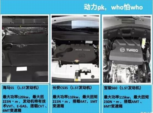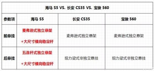 当下,SUV车型已经变得越来越受欢迎,这年头,好像手里没有一台SUV都不好意思出来混,于是乎,各大厂商也纷纷应势而动,使出了各种杀手锏,不过,如何在多如牛毛的SUV车型中挑到最爱,还是得费一番功夫的。 对于时下关注度最高的8万元SUV市场来说,众多品牌谁能经得起推敲呢? 实际上,在这个价格区间的车型为数不少,海马S5、宝 骏560、长 安C S 35等国产紧凑级SUV代表车型都是这一层级比较不错的选择,但细究起来这三款车谁更胜一筹?且听小编慢慢道来。 海马S5个性造型狂吸粉 怎样的外观造型才算够抢戏?海马S5可以说是这个8万元SUV层级为数不多的清流了,造型个性,同级难及。小编私心认为,海马S5“个性万万岁,型格处处有”的独有原创设计风格,堪称这个级别的法 拉 利Enzo和帕加尼Zonda了,绝 对是出街利器一枚。 与设计见长的法 拉 利、帕加尼一样,海马S5的造型出自意大利著名设计公司LD’A,原创大幅虎啸式梯形进气格栅辨识度颇高;前脸灯组设计采用分体式结构,带透镜的鸥翼式前大灯在带状装饰的衬托下炯炯有神,LED日间行车灯与转向灯集成在一起,与雾灯组成三层结构,视觉上更具特色;内饰方面,海马S5采用黑红/黑棕双拼设计,大面积采用“搪塑”软性材质,在8万元级车型当中十分罕见,“双炮筒”嵌入式智能仪表盘与多功能方向盘等细节处的处理也展现出年轻质感。 而相较来说,宝 骏560与长 安 CS 35这两款同级车型在外观、内饰上都比海马S5略微逊色。长 安 CS 35的前脸略显圆滑,缺少了年轻的锐气,而宝 骏 560的整体设计同样如此,没有照顾到年轻人比较注重的“个性”;内饰方面,虽然三款车型的入门价格大致相同,但不论是内饰用材材质,还是做工等细节方面,长 安 CS 35与宝 骏 560均不及海马S5那么厚道,塑料感极大降低了整车品质感。 层次丰富 海马S5动力选择超贴心 在动力方面,海马S5与长 安 CS35能提供16L/1.5T的选择,而宝 骏5 60则能提供1.8L/1.5T的配置。 在发动机层面,三款车型都有1.5T的配置,通过对比能够发现,海马S5的1.5T涡轮增压发动机最大功率在三款车型当中最高,而223N·m的扭矩也属于中间位置,优势相对综合。在一些细节方面,海马S5还具有更加明显的优势,比如采用了博格华纳的涡轮技术、拥有VVT、E-GAS等特有技术等,这些是宝 骏5 60或长 安CS 35所不具备的。 而在变速箱层面,海马S5的优势足以力压两款竞品。除了能够提供6MT手动变速箱之外,海马S5还能够提供更具行驶质感的比利时邦奇第四代CVT变速箱。相比之下,宝 骏56 0除了6MT变速箱外,只能提供AMT变速箱的选择,不论在技术上还是行驶质感方面都差强人意;而长 安C S35则只能提供5MT/4AT的选择,在三款车型当中对消费者的友好度相对较差。 虽然这三款车的动组构成乍看之下差别并不是很大,但是通过数据和配置分析可以发现,海马S5的动力组合层次更为丰富,在动力总成上面也能够给予年轻消费者更多样的选择,是三款车型中最贴心的车型。 势要“独立” 海马S5底盘设计够专业 在底盘方面,众人皆曰“独立”好,而在这一方面,与其他两款车型相比,海马S5给足了年轻消费者对于底盘的预期,够专业,够越野,够纯正,够SUV。 海马S5采用麦弗逊式独立悬架 后五连杆式独立悬架设计,是三款车型当中唯 一 一个采用四轮独立悬挂设计的车型,在处理震动颠簸方面优势明显,能够给予消费者更为舒适的驾乘享受;除了独立悬挂的技术优势之外,海马S5前后悬架均添加了大尺寸横向稳定杆,这一点有意于在强调舒适性的同时加强海马S5的整体刚性,让海马S5更具运动属性。此外,海马S5采用日本TEIN的底盘调校,再配合海马S5独有的S-power动力系统、S-drive多路况驾驶系统等操控辅助技术,操控性上在三款车型当中也是无人能出其右。 在刚刚结束不久的“活力无限 青春敢闯 海马S5极境智驾之旅”中,海马S5就凭借自身的超纯正SUV底盘,以稳定的操控性、良好的通过性和极低的油耗,零故障、零爆胎、备用件零拆封,征服沙漠、砾石、草甸、涉水等全路况,一路长驱直入,直达地球之耳罗布泊,实现了对自身极限品质的有效校验。 相比之下,长 安 CS35与宝 骏 560则采用了前麦弗逊式独立悬挂 扭力梁式非独立悬挂的设计,在后悬的处理上远不能满足车辆的舒适性需求,同时缺失的前后大尺寸横向稳定杆的设定也让两款车型在对比当中被扣了不少分数。 360°贴心 海马S5 “黑科技”最酷炫 而在安全与智能配置方面,海马S5也有很多越级“黑科技”加持,在横向对比当中尽显风采。 在安全配置上,海马S5配备可视倒车影像、倒车雷达、6安全气囊、3H高刚性车身、四门防撞钢梁等配置,最大限度的保证了日常行车的安全,而Joy-Touch影音娱乐系统、SMART智能行车电脑系统、随速音量控制系统等配置的搭载也让海马S5的娱乐属性大大提升。 此外,海马S5还独具自动空调、副驾驶四向电动调节、车内花粉过滤等宝 骏 560、长安 CS 35这两款车型所不具备的功能,为消费者提供了极大的便利性。 当然,三款车型当中,海马S5最大的杀手锏便是360°智能驾驶辅助系统这一越级“黑科技”,通过安装在海马S5车身前后左右的超广角鱼眼摄像头,采集车辆四周的影像,形成360°全景俯视图,从而帮助消费者及时了解车辆周边视线盲区,这一点更是宝 骏 560、长 安 CS35所不能及。 另外,必须还要提的是,海马S5的终端补贴政策同样是宝 骏 560、长 安 CS35所达不到