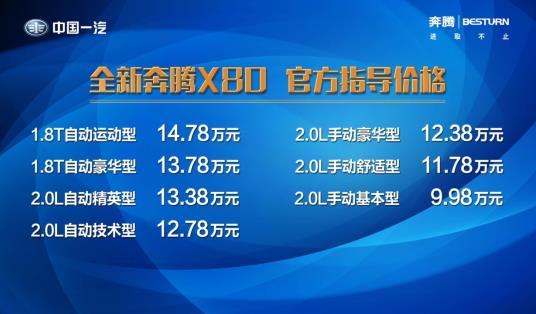 【全新奔腾X80】 全新奔腾X80是一汽奔腾专为“自信,有底气,稳中求进的社会中坚”,倾情奉献的一款高规格性能型SUV。经历267项技术提升,全新奔腾X80以令人惊喜的全面升级完美实现了他们对城市SUV的全新期待。 全新奔腾X80共推出1.8T和2.0L两个排量7款车型,河北国和腾朗汽车销售服务有限公司销售经理鲍冲先生发布了全新奔腾X80的市场指导价为9.98万—14.78万。 【全新改变,处处安心】 全新奔腾X80相比于老款X80实现了267项升级,分别从外部造型、内部造型、装备三大方面进行了较大的升级改造! 外部造型上25个总成88项全新开发,包括外后视镜、后组合灯、前大灯、后牌照灯、后保险杠、扰流板、高位制动灯、轮罩装饰条等部件上进行了升级改造,相较老款车型,在保持沉稳大气特点的同时,营造了更浓厚的时尚感,更加实用美观! 内部造型上16个总成57项升级开发,组合仪表、出风口、EPB开关、警报灯开关、座椅、副仪表板本体装配等部件上实现了升级改造,多项科技的升级与增添,让你充分感受人性化科技,智享生活乐趣。 从装备上19个总成122项全新升级,发动机控制单元、倒车雷达、主动安全系统、音响、倒车影像摄像头、空调控制器、全新EPB电控系统等让人眼前一亮!多方面的优化让驾驶变得更简捷,更能享受驾驶乐趣,所有的这些细节都让奔腾全新X80成为一项完美的技术聚合体! 本次上市发布会的高潮是国和奔腾4S店现场发布全新奔腾X80的指导价格及相关激励政策:“五重豪礼”等你来抢!——签到礼、试驾礼、订车礼、金融礼、置换礼!极具竞争力的价格和激励政策无疑让全新奔腾X80的市场表现更值得期待。有多位客户当场就交了订金,其中一位客户表示,“我一直在关注奔腾X80,这次发布会优惠力度真不小,所以我赶紧定了”。 发布会还安排了互动游戏、团购签单、自由赏车等环节,现场气氛热烈,客户踊跃咨询新车情况。我们期待着奔腾系列给石家庄地区广大消费者带来更多惊喜! 经销商名称:河北国和腾朗奔腾4S店 地址:石家庄市裕华东路166号时代汽车广场 电话:0311-85066222 85066333 |