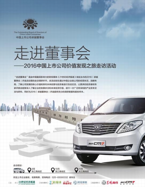 10月初,中国商业报纸领导者《21世纪经济报道》发起“2016(第九届)中国上市公司卓越董事会” 评选活动,并在评选开始便启动走访环节,邀请专家、机构代表对上市公司进行专业调研及深度交流。据介绍,“走进董事会——2016中国上市公司价值发现之旅”调研团队由知名专家学者、行业分析师、资深财经记者、机构投资者、高净值个人投资者等组成。 10月-11月期间,“走进董事会”调研团将走访珠三角、环渤海、长三角等省份及城市的如:美的集团、伊利股份、国药股份、凯撒旅游等优质上市公司,就“公司的董事会治理体系,公司市值管理手段,董事会战略发展布局及公司发展的核心价值”等话题与上市公司董事会高层进行深度交流,调研用车由东风风行CM7全程提供支持。 大小赛会全用它 最火官方指定用车 年复一年,风行CM7作为定位“首席商务舱”,自2013年上市至今已经度过了三个春夏秋冬,在这三年的时间里风行CM7创造商务用车界的传奇,先后成为“G20峰会”、”中国-东盟博览会”、”中国金融论坛”、“中国地方两会”、“亚太商旅峰会”、“武汉网球公开赛”、“亚洲男篮锦标赛”、 “F1摩托艇世锦赛”等诸多重量级赛会的指定用车,能够成为众多赛会的指定用车也充分说明了风行CM7在商务领域的绝对实力。 风行CM7此次成为董事会调研用车,主要是因为其丰富的赛会接待经验以及优秀的商务接待能力,并且风行CM7也尤为适合走访企业的日常接待以及员工的日常使用。在此次走访活动中,风行CM7优异的品质与优质上市企业完美契合,一起演绎了“走进董事会”的大戏。 多元化配置 一切只为舒适 跟着风行CM7“走进董事会”,走进美的集团,感受名企文化,探密名企成功精髓,富丽堂皇的建筑风格定会给你带来别样惊喜!美的集团,“美的邂逅美的集团”,家喻户晓。这家以家电制造业为主的大型综合性企业集团,在2013年名列中国最有价值品牌第5位。走进标杆企业,走进它的企业环境、人文环境,同标杆企业管理层接触、交流、分享,更深刻、全面地学习名企成功的精髓。 其实,风行CM7在中高端商务车领域里也可谓标杆。其时尚大气的外观,多项高档舒适配置,使其深受各大企事业单位以及高端商务人士的青睐。 风行CM7在空间方面,长5150mm宽1920mm高1925mm轴距达3200mm,大尺寸车身带来宽阔的架乘空间。配置方面,风行CM7采用总裁级豪华座椅,可实现180度平躺、电加热等功能并配有电动小腿拖板,不仅如此风行CM7还配备了大尺寸顶置显示屏、前后独立控制双空调、前后双天窗、侧滑门窗中窗等人性化、科技化配置,充分满足企业日常接待及员工日常使用的需求。 主被动双重保护 卓越的安全性 此次走访地点包括珠三角、环渤海、长三角等多省份及城市。由于路途遥远再加上不同的路况和地形等因素,所以在安全方面主办方尤为重视。 风行CM7在安全方面可谓双管齐下,在被动安全方面,其车身采用宝钢优质高级钢板材料,其中关键部分100%采用高强度钢和超高强度钢板材料,占全车钢板材料的40%,大面积高强度车身可全方位保护商界精英的安全。此外风行CM7在车内还配备了前安全气囊+侧安全气囊,可以将碰撞后对人员的伤害降至最低。在主动安全方面,风行CM7采用博世最新9.1版ESP系统,其集成TCS/VDC/HBA/ABS/EBD/HHC系统功能,可以防起步打滑,防转向过度或不足,防制动力不足,防车轮抱死失控,防制动力分配僵化,防半坡起步溜坡及陡坡缓降。不仅如此,还配备了360度全景环视系统、碰撞自动解锁车门、预张紧式安全带、胎压监测等多项主动安全配备。如此全面的安全保护,即使在长时间长距离的行车情况下也能很好地保障商界精英的人身安全。 “走进董事会”走访活动还在继续。随着调研团队深入探知各大优质上市公司,风行CM7也以其舒适的乘车环境、全方位的安全保护为“走进董事会”调研工作推波助澜。 |