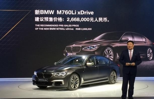 在2016广州车展上,宝马7系序列中的旗舰车型——宝马M760Li xDrive公布了其预售价为266.80万元。日前,我们从相关渠道获悉,这款车有望在2017年1月14日正式上市销售,新车搭载6.6L V12双涡轮增压发动机,百公里加速仅需3.7秒。 外观方面,宝马M760Li xDrive配备了一系列空气动力学套件,包括全新样式的前保险杠和后行李厢盖的扰流板。此外,新车还配备了一款全新样式的轮圈,前后轮胎规格分别为245/40 R20与275/35 R20。 内饰部分,新车采用了全新样式的运动方向盘,并在车内多处装配特殊的V12标识。配置方面,该车具备主动巡航功能、车道保持辅助系统、刹车辅助系统等,并且还带有3D视图及全景影像等功能。 动力方面,新车搭载了一台6.6L V12双轮增压发动机,最大功率为609马力(448千瓦),峰值扭矩达到800牛·米,且与之匹配的是8速自动变速箱,在四驱系统的辅助下,从静止加速至100km/h仅需要3.7秒。此外,新车还配备主动转向系统和经过调校的空气悬架。 |