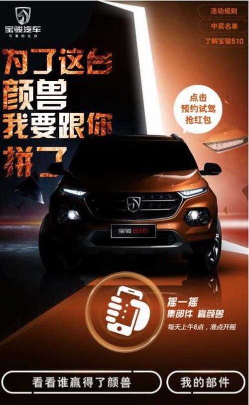 新年好啊~新年好啊~祝福大家新年好~在辛苦忙碌了一年之后,2017年新春已经不知不觉的到来了。新的一年里不知你是否已经定下了自己的新年愿望,是否幻想着能够拥有一台属于自己的座驾。如果你真的有这个心愿,那么就千万不要错过宝骏品牌带来的新春送福。 在过去的一年中宝骏510收获了众多用户朋友的关注与支持,为了回馈大家的厚爱,宝骏510准备了多重新春好礼,同时也祝愿您:乐享新年,阖家欢乐,步步高升,财源滚滚,心想事成,最终方能独占鳌头。 头福至——乐享新年:拿起手机摇一摇 颜兽伴你三年时光 “摇颜兽”活动是宝骏510推出的一项互动活动,消费者可以通过微信授权进入活动页面,每摇一次,即可获得一块宝骏510部件,集齐6块部件则有机会获得宝骏510 3年免费使用权。了解活动机制请点击官网垂询。 次福至——阖家欢乐:漫漫长假不孤单 《单身战争》伴你过年 宝骏510联手乐视,打造生存式相亲节目《单身战争》,《单身战争》是一档富有创新性的情感类节目,邀请100位单身男女进行多对多的爱情生存战。在节目当中单身男女们要经过6轮残酷竞争和快速淘汰,在最终配对成功的情侣可以获得宝骏510的一年使用权。新颖的节目形式,丰厚的奖品设置,晚饭过后全家欣赏,相信大家一定会收获满满的乐趣。 三福至——步步高升:GMAC低首付、零利率。首付最低至5100元,即可抢订宝骏510,同时畅享购车零利率。 四福至——财源滚滚:宝骏510新春红包大派送。1月1日-2月20日,用户可登录官网了解详情。 五福至——心想事成:购置税补贴。凡在2017年1月31日前预定宝骏510,且3月31日前提车的客户,上汽通用五菱将对2017年较2016年所增加的2.5%的购置税税率所对应的购置税金额予以补贴。 六福至——独占鳌头:宝骏510网络首发抢先订。宝骏510将延续天猫和汽车之家的网络抢定活动,对于活动中产生的红包和购车基金,只要在1月31日前提车,有限期将延至3月31日。 (注:除活动三和活动五外,以上同类活动不重复叠加参与。) 如此多的祝福与福利只愿用户朋友们能度过一个美好的假期,能早日圆了自己的购车梦。这样一款颜值、品质俱佳的小型SUV,预售价仅为5.98万元起,还有什么理由不选呢?心动不如行动,赶快参与进来,早日将宝骏510开回家。 详情请关注上汽通用五菱官网或咨询当地经销商 |