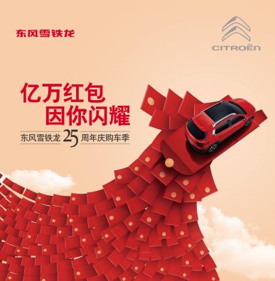 亿万红包 因你闪耀 东风雪铁龙25周年庆 “亿万”红包购车季盛大开启 因你闪耀——25载风雨路,因有你的支持,我们跻身中国主流汽车品牌行列; 因你闪耀——单一家轿到商务旗舰;从SUV到MPV再到新能源产品,因有你的信赖,我们产品矩阵日渐完善与强大; 因你闪耀——300多万用户的认可,“家一样的关怀”服务理念,让我们在J.D.Power(CSI/SSI)双双夺冠; 因你闪耀——百年传承历久弥新,“更年轻,更具活力和创造力”全新品牌形象; 因你闪耀,我们懂得感恩回报。 为庆祝东风雪铁龙品牌创立25周年,与全国消费者共享品牌25年的荣耀与喜悦。即日起,“因你闪耀”--东风雪铁龙25周年“亿万”红包购车季在全国正式启动。 “因你闪耀”--东风雪铁龙25周年“亿万”红包购车季,广大用户将畅享三重大礼: 第一重大礼是“耀”你到店:过完年了就以为"红包礼物雨"结束了吗?错,还有东风雪铁龙“到店红包雨”等着大家呢,只要你到店并通过全民AR实景扫一扫就能抢到价值不等的红包。 第二重大礼是“耀”你试驾:除了红包雨之外,你可以试驾店内所有车型,感受E动战略(PureTech)的强劲动力,试驾之后通过扫码就能获得最高价值666元的试驾红包,100%中奖哦!。同时,只要你点击活动广告或扫描二维码预约试驾,就能获得QQ音乐及腾讯视频会员资格。 第三重大礼是“耀”你购车:抢完红包雨之后,你看中了哪款车型想把它带回家,那么你还将享受“补贴25%购置税(不含C6),18期免息和2-3年低息,送交强险”的大红包,如此多的好礼还不快快行动! 除了新客户之外,东风雪铁龙针对老客户也准备的服务闪耀体验三重礼:第一重礼是耀体验,维修保养关爱季以及美丽女人节活动;第二重礼是耀升级,到店置换C6/C5/C4L的客户,可以享受金融和置换等高额补贴;第三重礼是耀分享,到店做保养的老客户,通过转介绍成功,将获得免费保养等机会。 本次活动将全面覆盖全国400多家经销商,并延展到东风雪铁龙的二级网点,让更多的消费者感受东风雪铁龙25周年的喜庆。东风雪铁龙旗下全系产品悉数参加本次活动,满足用户对动力、操控和舒适的不同购车需求。旗舰车型全新一代越享高级轿车C6,为顾客带来极致优越的全方位舒适享受;新C5,凭借雪铁龙大师级底盘调教,将行车振动频率精确控制在1HZ左右,为用户创造“长途不累、簸路不颠、弯道不飘”独特的动态舒适驾乘体验;全新C4L以全T动力组合抢占高端性能制高点,获得了“动力新标杆”,在高端家用车市场独占鳌头;明星车型C4世嘉,作为东风雪铁龙征战中级车市场的一款重磅车型,以五星安全傲视群雄;全球新一代欧系中级车-全新爱丽舍作为PSA全新EMP1首款车型,更是凭借“品质高、空间大、配置全”的特性,汇聚最新科技智慧结晶,创领全球中级家轿新标准;而作为东风雪铁龙品牌的首款小型SUV车型,C3-XR扎根于年轻消费者市场,在产品力和年轻化营销方面全面发威,稳居小型SUV市场主流地位。 今年是东风雪铁龙品牌创立25周年,25年来,从富康到全新爱丽舍、从世嘉到C4L、从C5到C6,东风雪铁龙不断从人性化创新的视角出发致力为用户带来“与众不同,愉悦感受”。“因你闪耀”--东风雪铁龙25周年“亿万”红包购车季的火热开启,以及更实惠的金融政策、更多的惊喜大礼助阵,东风雪铁龙用实际行动回馈消费者的厚爱,帮助实现消费者的闪耀生活。 |