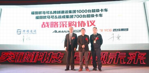 【欧马可超级卡车价值风暴启动】 超级卡车价值风暴的核心价值内涵在于,为用户提供超级卡车产品高效运营解决方案、产品一体化解决方案、行业定制专业化解决方案、智能互联解决方案、超值服务方案、金融解决方案,六大超级卡车解决方案。 由欧马可S5城际物流运输中卡与S1、S3城市、城镇物流运输轻卡组成的全新平台欧马可超级卡车,与欧曼EST超级卡车一起构建起超级卡车的完整阵营,为中国物流用户提供全系列高效智能运输装备一体化解决方案;同时,针对电商快递、冷链、危化品运输、市政与环卫等高效物流行业需求提供定制化产品解决方案。 【全新平台欧马可S5超级中卡】 智能互联价值方面,整合车联网五大基础平台、实现五大核心功能、构架两大管理体系,同时通过车联网智能互联技术为用户及行业车队提供高效、智能、互联的整体解决方案; 并且欧马可超级卡车行业首推“20大核心零部件4年不限里程”和“整车3年20万公里”的超长质保政策,同时还通过服务创新——如会员制、汽车延保等,为客户提供更多的增值服务和选择。 在金融价值方面,联合福田金融专项开发个贷通业务,为用户提供手续简单、快捷、高率的,集购车+金融贷款等一站式需求解决方案。 对产品全生命周期价值的不断探索与升级,使得全新平台欧马可超级卡车得到市场以及用户的关注与认可。这也就是缘何在中国首发现场,欧马可S5超级中卡一经上市便赢得了用户的认可,促使跨越速运集团有限公司与远成集团现场就与欧马可分别签署了1000台、700台超级卡车战略采购协议的原因所在。 【欧马可与跨越速运集团、远成集团签署欧马可超级卡车战略采购协议】 作为福田汽车旗下超级卡车核心成员,全新平台欧马可S5超级中卡,必将以新锐之姿扛鼎中国中卡行业。至此,欧马可超级卡车已形成由全新平台欧马可S3超级轻卡以及全新平台欧马可S5超级中卡,联袂组成的超级中轻卡阵营。两强珠联璧合,双星闪耀,将共同助力福田欧马可进一步实现品牌跨越,成就高端中轻卡品牌“领导者”。 |