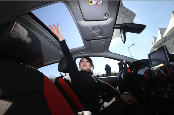 换挡旋钮设计不仅方便操作还很省空间,用习惯后会很容易实现不用目视的“盲”操作,左上角的B+/B-两个按钮可以控制动能回收的等级,分为三个等级可供选择。 主副驾遮阳板都配有化妆镜,EX260用户群肯定不乏女性车主,平时在车上补个妆简直太方便了。 电动天窗还是非常实用的,想着开着EX260就会为北京的蓝天做出一份贡献时,忍不住向天窗外蓝蓝的天打个招呼。 尽管底盘较高,EX260后排座椅的乘坐舒适性还是不错的,中间位置设有头枕,下方脚踏处几乎全平,为三人乘坐提供了更好的便利。 |