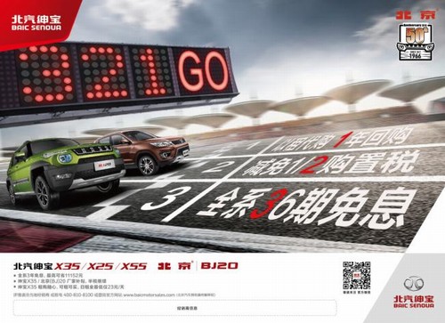 阳春三月,万物复苏,最近北汽绅宝也为车市平添了一声惊雷。据悉,北汽绅宝推出了史上最给力的“321”钜惠政策,同时开启“3年免息”、“购置税减半”和“以租代购 1年回购”等优惠活动。在这春暖花开之际,北汽绅宝正以十足诚意喊你一起“321 GO”! “321 GO”! 就是这么超值 据悉,这股由北汽绅宝强势刮起的优惠飓风,让整个春天都充满了超值的味道,诱惑十足。此刻就让我们快跟随北汽绅宝的脚步,一起“321 GO”,看看政策究竟有多给力! 三年免息 全系超值GO 活动期间,凡是购买绅宝X25/绅宝X35/绅宝X55 /北京(BJ)20的用户,均可尊享36个月超长免息的金融政策,在贷款利率居高不下的今天,北汽绅宝真正做到了帮你减负、为你省钱。 二分之一购置税 减免超值GO 2017年,购置税调整到75折让很多人心塞。为了让消费者更加安心的购车,凡在活动期间,购买绅宝X35/北京(BJ)20车型的用户,依然可以享受到购置税减半的实惠,十分贴心。 一年回购 以租代购 实力超值GO 针对绅宝X35全系车型,北汽绅宝推出了“以租代购 一年回购”的超值政策,每天租金最低只需23元,不足一杯星巴克的价钱,你就可以开上高品质SUV。同时,你还可以在1年后选择退车,最高可将你的首刷款全额退回。政策已经开启,绅宝X35用真实力来征服你。 “网红”也疯狂 就是这么给力 一声“321 GO”超值福利令下,不少消费者早已跃跃欲试,打算把“网红”绅宝X35疯狂抢回家。作为北汽工业2.0时代的一款实力车型,绅宝X35一直以来人气爆表,并以高颜值、高配置、大尺寸完美诠释了小型SUV“新价值标准”的真实力。 颜值是一辆SUV的“门面”,绅宝X35在追求高颜值的同时兼顾动感。平直的腰线搭配“豹肩式”轮包设计,带来静中有动的视觉效果。前脸,蜂窝状的前格栅中镶嵌着醒目的北字LOGO,透镜式前大灯透露出犀利的眼神;车尾,“狮爪”样式的尾灯,鲜明的SENOVA家族标识,前后呼应的动感让人难忘。 绅宝X35作为一款家用SUV,为家守护是它最大的责任。1.25m2超大全景天窗傲视同级,前排座椅加热功能更是同级独有,Smart Call手机智能互联系统、自动前大灯等配置将让家尽享科技的魅力。 对于很多人来讲,车是第二个家,所以在空间上必不会将就。绅宝X35拥有同级最长的轴距和同级最大的车宽,宽敞的乘坐空间带来犹如客厅般的舒适享受。大尺寸的后备箱,让载物不再是压力,幸福信手拈来。 这一次北汽绅宝的钜惠政策堪称“一脱到底”、尺度够大,可以说是用最大的实惠来解决广大消费者的痛点。机会只有一次!这个春天,这么热辣超值的政策当前,此时不购更待何时? |