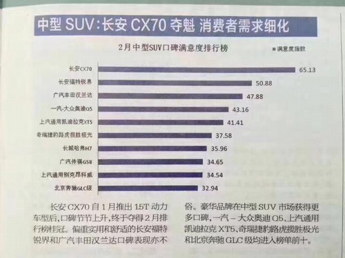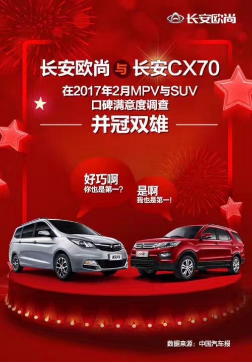 如果你是汽车迷,特别是国产自主品牌铁粉,那你一定不会错过“有数”舆情监测专题报告。该报告中的“口碑满意度排行榜”,是有数汽车舆情监测室在2017年全力推出的全新榜单,以更好地发挥《中国汽车报》作为行业媒体的舆论领袖和监督作用,为行业和消费者提供更有价值的决策参考。自主品牌翘楚长安欧尚品牌用实力说话,现已荣登2017年2月口碑满意度排行榜中型SUV和MPV口碑榜第一,傲视群雄,着实让人叹为观止! 利剑出鞘 SUV和MPV双第一舍我其谁 在有数汽车舆情监测室全力打造的 2017年2月SUV口碑满意度排行榜中,长安CX70顺利突破众多合资产品围攻,在2月中型SUV口碑满意度排行榜中以65.13分的傲人表现荣居榜首,远超第二名长安福特锐界14.25分,令人刮目相看!长安CX70作为长安欧尚品牌旗下首款SUV车型,依托长安汽车全球研发体系和全球供应商体系倾情打造,去年4月上市以来,深受消费者的追捧,一举成为了大7座标杆车型,此次获得SUV口碑满意度第一当属实至名归。 而长安欧尚则以61.43分的优异成绩实现自我突破,成功超越GL8荣登2月MPV口碑满意度排行榜第一名。一直以来,长安欧尚的市场表现都是稳定且优异,以“国民MPV”的良好形象征服10W+家庭,持续领跑MPV市场,这也从侧面有力地反映出了用户对长安欧尚越级产品力的认可。近期长安欧尚2017款经过14项升级焕新上市,势必让这款“时尚家用MPV”的市场表现再上一层楼。 此次长安欧尚及长安CX70携手荣登MPV和中型SUV口碑满意度排行榜第一!可谓是名利双丰收! 专注产品 依托全球研发体系打造国民好车 俗话说好产品才有好口碑,长安欧尚品牌全球研发体系和全球供应商体系,是其作为中国自主品牌实力担当的有力保障。该品牌始终秉承“以用户为先”的经营理念,以“打造世界一流汽车企业”为宏伟愿景,以“引领汽车文明,造福人类生活”为神圣使命,深刻洞察市场和消费需求的变化,并基于此为消费者打造国民好车。 全新2017款长安欧尚,无论在外观设计方面的征服颜控达人,科技研发方面实现的人车智能交互,以及在驾乘体验方面的舒适随心畅享,还是安全系统方面的驾乘升级,都时刻将用户需求放在首位,切实助力实现车主的高品质驾乘需求。它配备了无钥匙进入、一键启动、定速巡航、在线导航、倒车影像随动线、右侧影像、后视镜电动折叠、全车绿玻璃、主驾驶位座椅腰部支撑和加热等功能,其时尚的外观设计和丰富实用的配置赢得了一大波拥趸者。 |