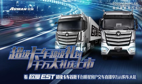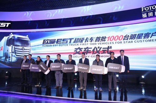 2017年3月26日,以“突破科技 引领未来”为主题的欧曼EST超级卡车首批1000台明星客户交车仪式在北京超级卡车培训体验中心隆重举行。目前,线上订车已经达到352辆,现场订车实现1291辆,订单一共达到1643辆。同时,为全面让利用户,截止3月28日12点之前,用户依然可通过登录福田戴姆勒官方网站/APP、官方微信等线上渠道订购欧曼EST超级卡车。 欧曼EST超级卡车千万超级礼包 欧曼EST超级卡车 首批明星大客户现场完成车辆交付 超级卡车全球创新联盟成员为欧曼EST超级卡车站台 |