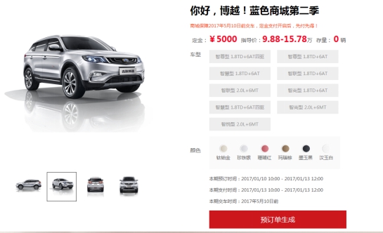 1月13日上午10时,吉利博越蓝色商城预售第二季活动正式开抢,本次活动的2017台博越原本设定了2个小时的预售支付时间,却在61分钟内就被抢购完毕,相比第一季提前14分钟,再次刷新博越线上预售新速度,打响了博越2017年热销的第一“抢”,充分展示了博越广受追捧的火热势头。 吉利博越本季预售活动,61分钟内2017台博越被抢订一空,提前锁定预定车款金额2.83亿元。支付最高峰在系统开启后第15分钟,1分钟内成功支付695笔预订单。另外,从订单区域分布来看,华南、华中,浙江、华北地区是主力市场,充分显示博越已成为一二线城市主流消费者追捧的智能互联精品SUV。 此次活动在第一季明确交付时间、蓝色商城专属服务、订单透明可查询三重保障基础上,又实现了“一个账号只能预订一台车”的公平性、并设定“预订期”和“定金支付期”两个时间段,定金支付完成前可修改订单信息等方面的优化升级,为更多客户预订到自己心仪的车型提供了极大的便利和全新的购车体验。 本季预售车型包括博越2.0L+6MT智联型,1.8TD+6AT智慧型、智尊型、两驱智联型以及四驱智尊型五款车型,都具备博越主打的智能互联配置,全部在一小时内被预购完毕的盛况也充分证明了博越作为智能互联精品SUV引领者的市场地位。其中200台首次在蓝色商城预售的1.8TD+6AT两驱智联型,在上线后不到半个小时就被抢购一空。本季预售出的2017台博越到2017年5月10前全部交付,堪称投资市场上最被看好的“期货”车。 不仅如此,本季预售活动中成功下单的用户纷纷晒出预订页面截图,分享成功预订博越的喜悦。一位来自广州的博越准车主表示,“打算买车以来,就对博越情有独钟,虽然知道提车难,但还是绕不开博越情结,听说蓝色商城预售博越之后,第一时间上商城下订单,今天支付系统还没开启就在电脑前摩拳擦掌,还早早检测网速做好万全准备!抢到了博越算是可以安心过年了,要入手博越诚意是第一秘诀!” 博越是吉利汽车历时三年半打造的智能互联精品SUV,上市9个月累计订单超18万台,用户交付近11万台的成绩,成为炙手可热的中国品牌智能互联SUV标杆,更是深受用户喜爱的“三好先生”。 作为一款网红车型,吉利博越70%的用户是活跃于互联网的年轻活力一族,也是处于事业上升期的城市白领人群。吉利汽车针对排队购车的消费者打开一个直通厂家的“蓝色通道”,显然也契合了目标消费人群的购买习惯和需求。同时,本季预售活动是吉利博越在第一季基础上对电商之路的进一步探索,抢眼的预售业绩也为吉利汽车今后开展更多线上预售活动提供了信心背书。据悉,吉利博越的两个产能基地宝鸡基地和春晓基地也不断通过技术改造,春节加班倒班生产来提升产能等一系列诚意举措缩短交车周期,充分传递出吉利汽车始终以用户为中心的发展理念。 |