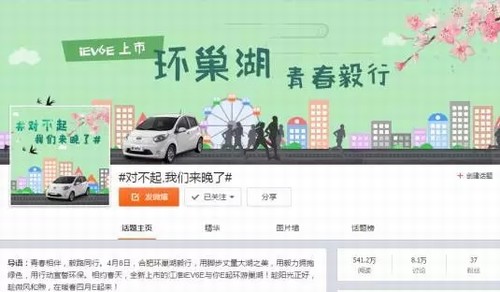 前方捷报!刚过两个多小时,冠军产生啦~~ 毅行者祝依飞已经到达40km黄麓镇百花塘终点 太厉害了吧! iEV6E助力环巢湖毅行活动,引发微博网友强烈关注 让小i充分的感受到大众对环保毅行活动的热情。 江淮iEV6E环巢湖媒体试驾会 同一天,在烟波浩瀚的大美巢湖边,20余家媒体受邀参与了江淮新能源车iEV6E的试驾体验,时值万物萌动、春意勃发,群山妖娆,碧水潺潺,巢湖风景尽收眼底,在美景中驰骋,享受完美操控带来的试驾乐趣,别有一番风情。 试驾前的媒体交流会上,主办方也为大家介绍了这款城市E精灵的亮点,这款纯电动新能源车以其清新雅致的外观、清洁环保的动力系统,兼具稳定智能的操控和出色的续航能力,诠释了经济、环保、安全的品牌魅力及江淮微型电动车卓越的产品实力。 |